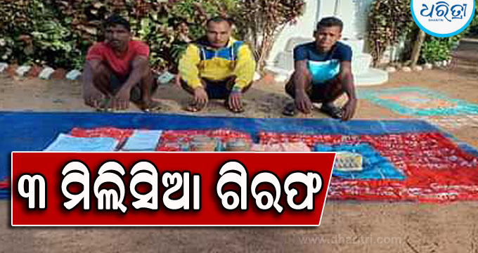 ଅପରେଶନବେଳେ ଜଙ୍ଗଲରୁ ୩ ମିଲିସିଆଙ୍କୁ ଗିରଫ କଲେ ସୁରକ୍ଷାବାହିନୀ