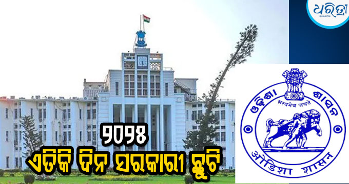 ୨୦୨୫ ପାଇଁ ପ୍ରକାଶ ପାଇଲା ସରକାରୀ ଛୁଟି ତାଲିକା, ଜାଣନ୍ତୁ କେତେଦିନ ମିଳିବ ଛୁଟି… ଭୁବନେଶ୍ୱର,୧୨।୧୧: ଆସନ୍ତାବର୍ଷ ୨୦୨୫ ପାଇଁ ସରକାରୀ ଛୁଟି କ୍ୟାଲେଣ୍ଡର ପ୍ରକାଶ ପାଇଛି। ଏଥିରେ ବିଭିନ୍ନ ପୂଜା ପାର୍ବଣ ସହିତ ଜାତୀୟ ଦିବସ ଆଦିକୁ ମିଶାଇ ମୋଟ ୨୬ ଟି ସରକାରୀ ଛୁଟି ରହିଛି। ଆଜି ରାଜସ୍ବ ଓ ବିପର୍ଯ୍ୟୟ ପ୍ରଶମନ...