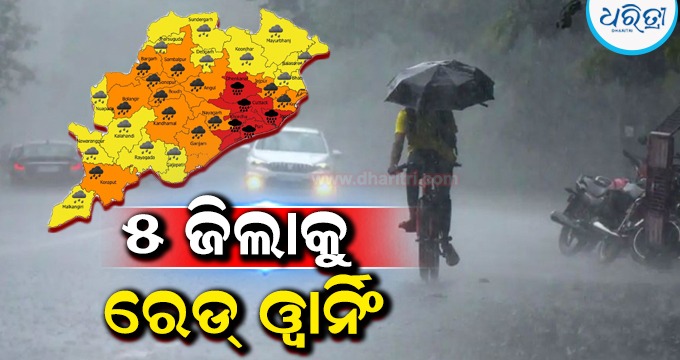 ଆସନ୍ତାକାଲି ପ୍ରବଳରୁ ଅତିପ୍ରବଳ ବର୍ଷା ସମ୍ଭାବନା: ୫ ଜିଲାକୁ ରେଡ୍ ଓ୍ବାର୍ନିଂ