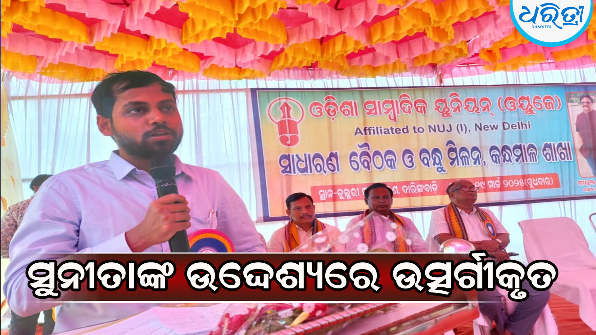 ଦାରିଙ୍ଗବାଡ଼ି,୧୯ା୩(ଅରୁଣ ସାହୁ): କନ୍ଧମାଳ ଜିଲା ଦାରିଙ୍ଗବାଡ଼ି ବ୍ଲକ ଡୁଲୁରୀ ପାଇନବଣ ପରିସରରେ ବୁଧବାର ଓଡ଼ିଶା ସାମ୍ବାଦିକ ୟୁନିୟନ (ଓୟୁଜେ )ର ସାଧାରଣ ବୈଠକ ଓ ବନ୍ଧୁମିଳନ କାର୍ଯ୍ୟକ୍ରମ…