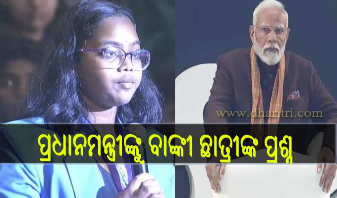 Video:‘ପରୀକ୍ଷା ପେ’ ଚର୍ଚ୍ଚା’ କାର୍ଯ୍ୟକ୍ରମରେ ପ୍ରଧାନମନ୍ତ୍ରୀଙ୍କୁ ପ୍ରଶ୍ନ କଲେ ଓଡ଼ିଶା ଝିଅ ନୂଆଦିଲ୍ଲୀ,୨୯।୧: ପ୍ରଧାନମନ୍ତ୍ରୀ ନରେନ୍ଦ୍ର ମୋଦି ସୋମବାର ‘ପରୀକ୍ଷା ପେ’ ଚର୍ଚ୍ଚା’ କାର୍ଯ୍ୟକ୍ରମ ଜରିଆରେ ଛାତ୍ରୀଛାତ୍ରଙ୍କୁ ଟିପ୍ସ ଦେଇଛନ୍ତି। ନୂଆଦିଲ୍ଲୀର ଭାରତ ମଣ୍ଡପମରେ ପ୍ରଧାନମନ୍ତ୍ରୀ ମୋଦି ଛାତ୍ରୀଛାତ୍ରଙ୍କୁ ସମ୍ବୋଧନ କରି କହିଛନ୍ତି, ନିଜ ପାଇଁ ଛୋଟ ଛୋଟ ଲକ୍ଷ୍ୟ ନିର୍ଦ୍ଧାରଣ କରନ୍ତୁ।...