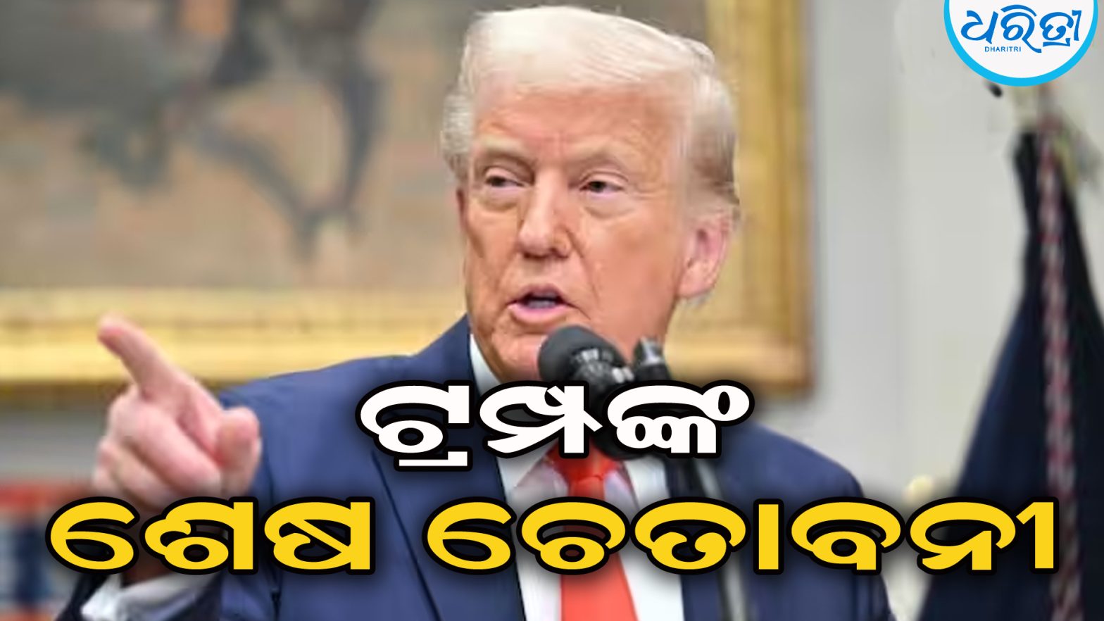 ଶାନ୍ତି ଚୁକ୍ତି ଗ୍ରହଣ ପାଇଁ ହମାସକୁ ଟ୍ରମ୍ପଙ୍କ ଶେଷ ଚେତାବନୀ, କହିଲେ ଏଥର ରାଜି ନ ହେଲେ… ଓ୍ବାଶିଂଟନ,୩ା୧୦: ଆମେରିକାର ରାଷ୍ଟ୍ରପତି ଡୋନାଲ୍ଡ ଟ୍ରମ୍ପ ହମାସକୁ ଶାନ୍ତି ପ୍ରସ୍ତାବ ଗ୍ରହଣ କରିବା ପାଇଁ ଏକ ସମୟସୀମା ଦେଇଛନ୍ତି। ଟ୍ରମ୍ପ କହିଛନ୍ତି, ହମାସ ରବିବାର (ଅକ୍ଟୋବର ୫) ସନ୍ଧ୍ୟା ୬ଟା ଭିତରେ ଶାନ୍ତି ପ୍ରସ୍ତାବ ଗ୍ରହଣ କରିବାକୁ ସମୟ ଦିଆଯାଇଛି।...