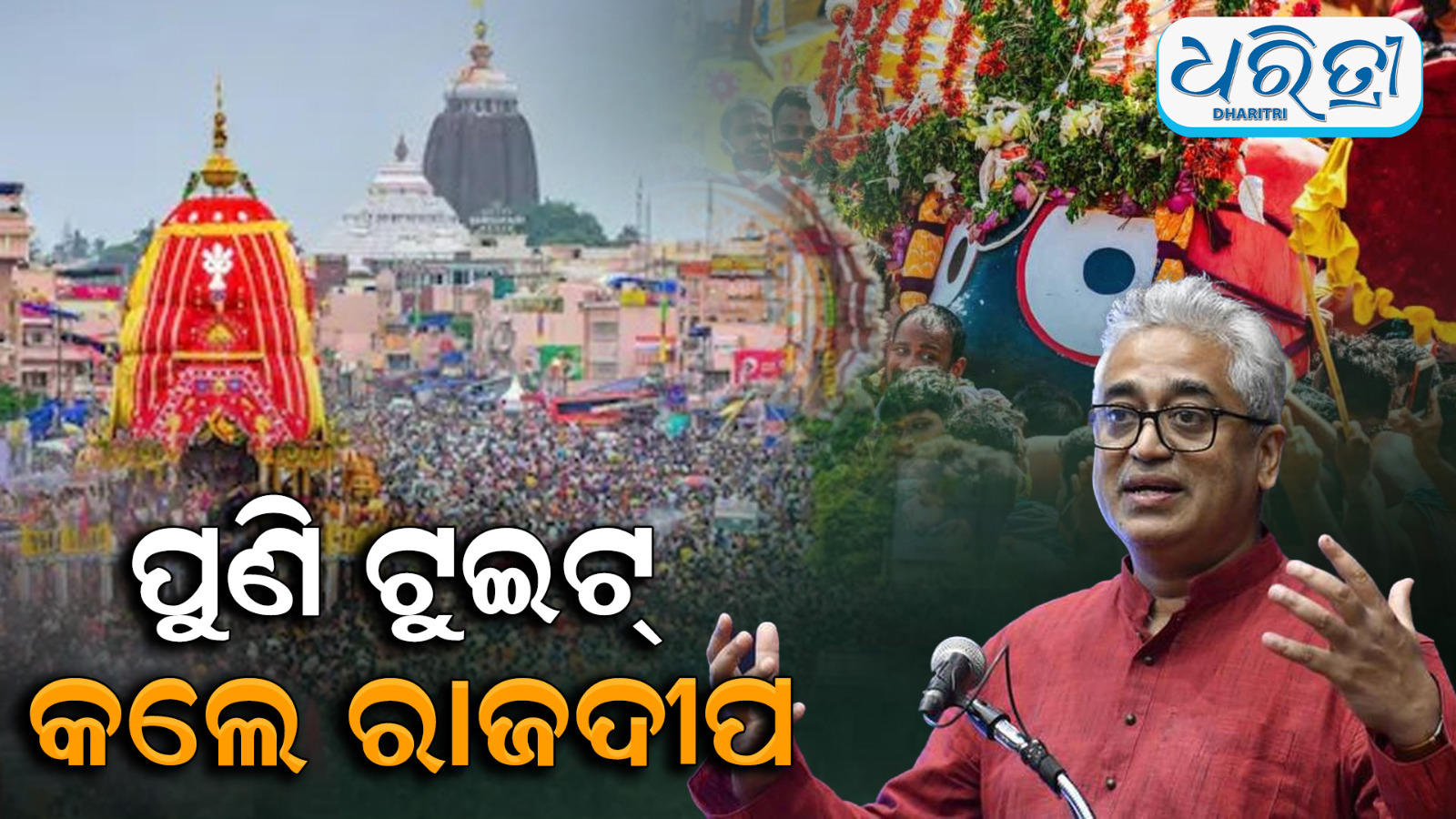 ନୂଆଦିଲ୍ଲୀ/ଭୁବନେଶ୍ୱର,୨୯।୬: ମହାପ୍ରଭୁ ଶ୍ରୀଜଗନ୍ନାଥଙ୍କ ରଥଯାତ୍ରାକୁ ନେଇ ଟୁଇଟ୍ କରି ବିବାଦରେ ଫସିଛନ୍ତି ବରିଷ୍ଠ ସାମ୍ବାଦିକ ରାଜଦୀପ ସର୍ଦେଶାଇ। ବିଶ୍ୱ ପ୍ରସିଦ୍ଧ ପୁରୀ ରଥଯାତ୍ରା ସହିତ ପଶ୍ଚିମବଙ୍ଗ ଦୀଘା…