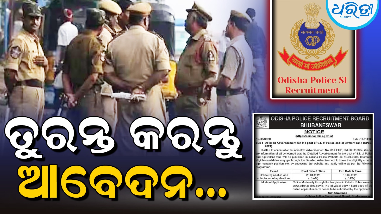 ଭୁବନେଶ୍ୱର,୧୮ା୧: ଓଡ଼ିଶା ପୋଲିସ ପକ୍ଷରୁ ଏସ୍ଆଇ ବା ସବ୍ଇନ୍ସପେକ୍ଟର ପଦବୀ ଖାଲି ଅଛି। ଏଥିରେ ନିଯୁକ୍ତି ପାଇଁ ଘୋଷଣା କରାଯାଇଛି। ଏଥିସହିତ ଏସ୍ଆଇ ସମକକ୍ଷ ପଦବୀ (CPSE-୨୦୨୪)…