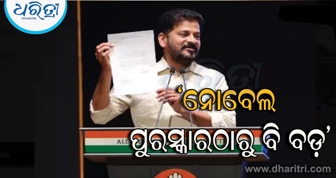 ନୂଆଦିଲ୍ଲୀ,୨୫।୭: ତେଲଙ୍ଗାନା ମୁଖ୍ୟମନ୍ତ୍ରୀ ରେବନ୍ତ ରେଡ୍ଡୀ ଏକ ସାର୍ବଜନୀନ କାର୍ଯ୍ୟକ୍ରମରେ ସୋନିଆ ଗାନ୍ଧୀଙ୍କ ଦ୍ୱାରା ଲେଖାଯାଇଥିବା ଚିଠିକୁ ‘ନୋବେଲ ପୁରସ୍କାର’ ଏବଂ ‘ଓସ୍କାର ଅପେକ୍ଷା ବଡ଼ ସମ୍ମାନ’ ବୋଲି ବର୍ଣ୍ଣନା କରିଛନ୍ତି। ଏହି ଘଟଣା ଅଖିଳ ଭାରତ କଂଗ୍ରେସ କମିଟି...