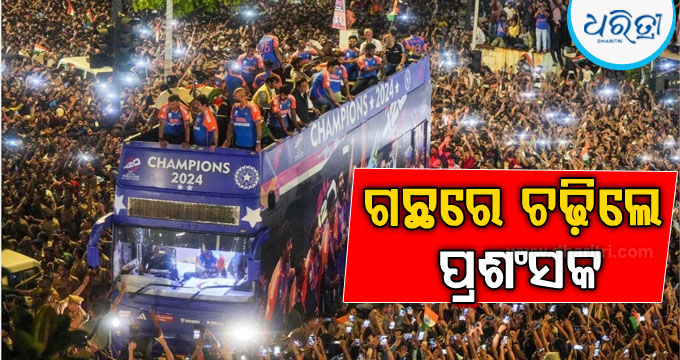 ନୂଆଦିଲ୍ଲୀ,୫।୭: ଟି୨୦ ବିଶ୍ୱକପ୍ ଜିତିବା ପରେ ଭାରତରେ ଉତ୍ସବର ମାହୋଲ ଦେଖିବାକୁ ମିଳୁଛି। ଏହି କ୍ରମରେ ଖେଳାଳିମାନେ ସ୍ବଦେଶକୁ ଫେରି ରୋଡ ଶୋ’ କରି ପ୍ରଶଂସକଙ୍କ ସହ ଖୁସି ବାଣ୍ଟିଛନ୍ତି। ଦିଲ୍ଲୀରୁ ନେଇ ବମ୍ବେ ଯାଇ ପ୍ରଶଂସକମାନେ ଖେଳାଳିଙ୍କ ଝଲକ...