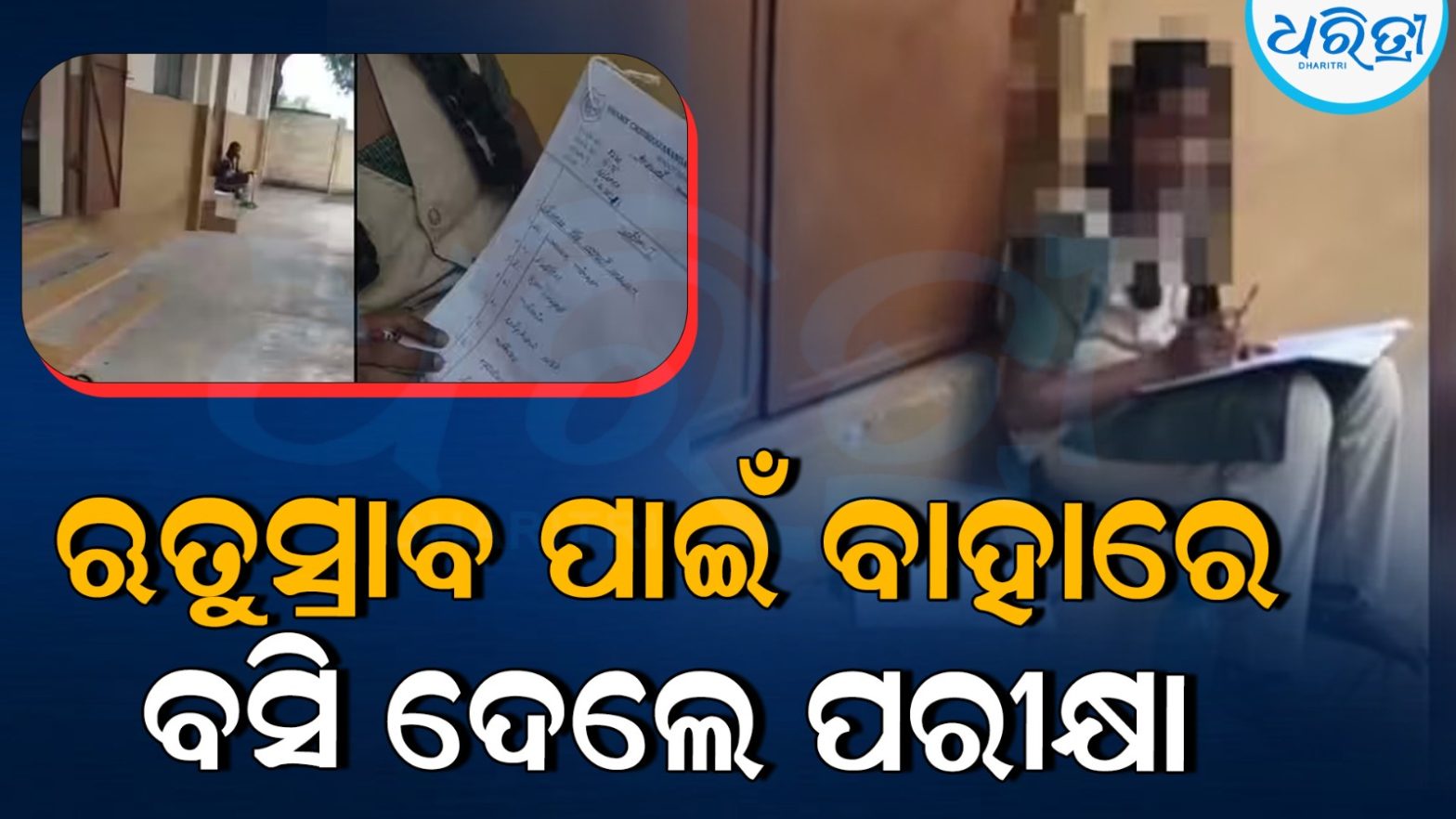 ମାସିକ ଋତୁସ୍ରାବ ହେଉଥିବା ଅଷ୍ଟମ ଶ୍ରେଣୀ ଛାତ୍ରୀ ଶ୍ରେଣୀଗୃହ ବାହାରେ ଦେଲେ ପରୀକ୍ଷା, ତଦନ୍ତ ନିର୍ଦ୍ଦେଶ