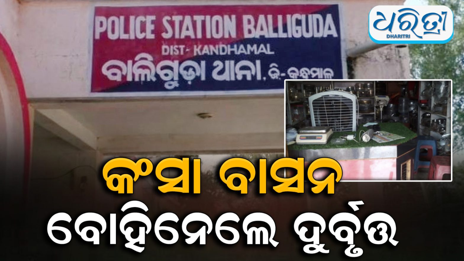 ବାଲିଗୁଡ଼ା,୧୯ା୬(ସଞ୍ଜୟ କୁମାର ପାଣିଗ୍ରାହୀ): କନ୍ଧମାଳ ଜିଲା ବାଲିଗୁଡ଼ା ଟାଉନସ୍ଥିତ ହାଟପଦା ମାର୍କେଟରୁ ବୁଧବାର ବିଳମ୍ବିତ ରାତିରେ ନିତ୍ୟାନନ୍ଦ ନାୟକଙ୍କ କଂସା ବାସନ ଦୋକାନରୁ ଏକ ଦୁର୍ବୃତ୍ତ ଦୋକାନ ଗୃହର ଉପର ଟିଣ ଛପର ଭାଙ୍ଗି ଦୋକାନରେ ପଶି ଶୋ’କେସ୍ ଡ୍ର’ରେ...