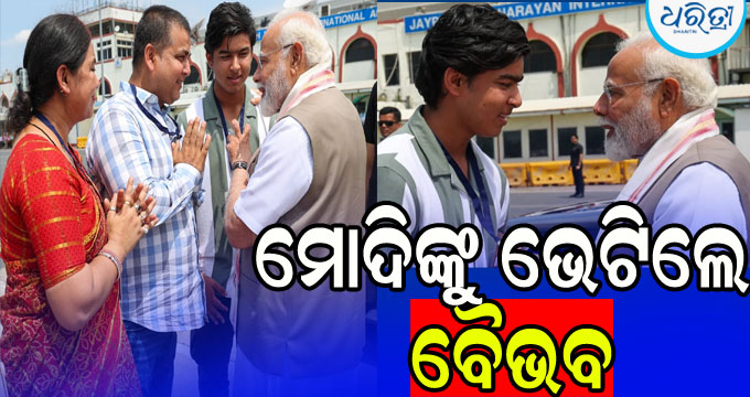 ପାଟନା,୩୦।୫: ପ୍ରଧାନମନ୍ତ୍ରୀ ନରେନ୍ଦ୍ର ମୋଦି ପାଟନା ବିମାନବନ୍ଦରରେ ୧୪ ବର୍ଷୀୟ କ୍ରିକେଟର ବୈଭବ ସୂର୍ଯ୍ୟବଂଶୀଙ୍କୁ ଭେଟିଛନ୍ତି। ବୈଭବ ପ୍ରଧାନମନ୍ତ୍ରୀଙ୍କ ପାଦ ଛୁଇଁ ତାଙ୍କ ଆଶୀର୍ବାଦ ନେଇଥିଲେ। ବୈଭବଙ୍କୁ ଭେଟିବା ପରେ ପ୍ରଧାନମନ୍ତ୍ରୀ ନିଜେ ତାଙ୍କ ଏକ୍ସ ହ୍ୟାଣ୍ଡେଲରୁ ଏ ବିଷୟରେ...