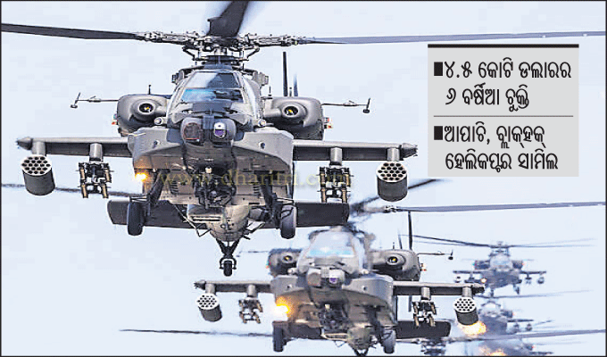 ତାଇପେଇ, ୨୮ା୮: ଚାଇନା-ତାଇଓ୍ବାନ ମଧ୍ୟରେ ଉତ୍ତେଜନା ବୃଦ୍ଧି ପାଉଥିବାବେଳେ ଆମେରିକା ଏହି ଦ୍ୱୀପରାଷ୍ଟ୍ରକୁ ଅସ୍ତ୍ରଶସ୍ତ୍ର ଏବଂ ଯୁଦ୍ଧବାହନ ଦେବାକୁ ଚୁକ୍ତି କରିଛି। ତାଇଓ୍ବାନ ଏବଂ ଆମେରିକା ମଧ୍ୟରେ ୪.୫ କୋଟି ଡଲାରର ଡିଲ୍ ୬ ବର୍ଷ ପାଇଁ ସ୍ବାକ୍ଷରିତ ହୋଇଛି। ଅର୍ଥାତ୍ ୨୦୨୮ ପର୍ଯ୍ୟନ୍ତ ଓ୍ବାଶିଂଟନ୍ ତାଇପେଇକୁ ଗୋଳାବାରୁଦ ସହ ବିଭିନ୍ନ ପ୍ରକାର ଅସ୍ତ୍ରଶସ୍ତ୍ର ଯୋଗାଇବ। ଏଥିରେ ଆପାଚି ଏବଂ ବ୍ଲାକ୍ ହକ୍ ହେଲିକପ୍ଟର ସାମିଲ ରହିଛି। ଏ ନେଇ ତାଇଓ୍ବାନ ପ୍ରତିରକ୍ଷା ମନ୍ତ୍ରଣାଳୟ ପକ୍ଷରୁ ଏକ ବିବୃତିରେ କୁହାଯାଇଥିବା ତାଇପେଇ ଟାଇମ୍ସରେ ରିପୋର୍ଟ ପ୍ରକାଶ ପାଇଛି।