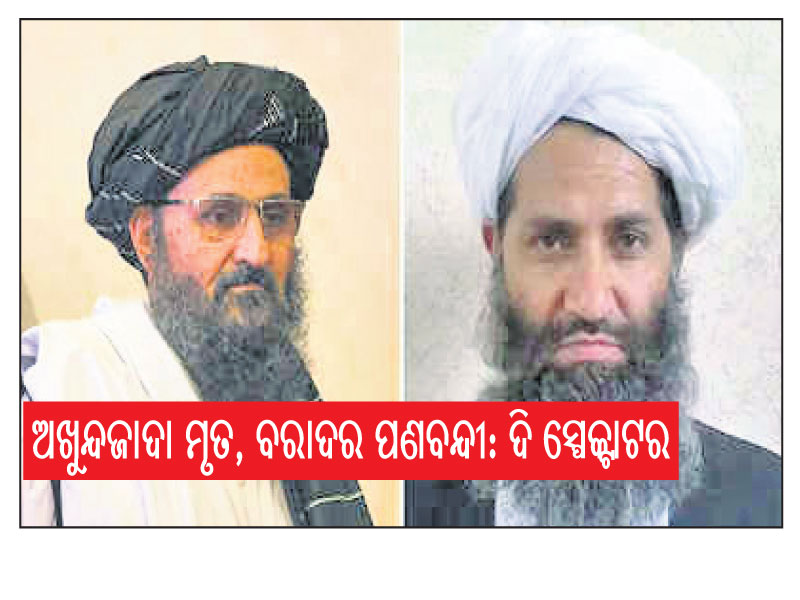 କାବୁଲ/ନୂଆଦିଲ୍ଲୀ,୨୧ା୯: ଆଫଗାନିସ୍ତାନର ଉପପ୍ରଧାନମନ୍ତ୍ରୀ ମୁଲ୍ଲା ବରାଦରଙ୍କୁ କାନ୍ଦାହାରରେ ପଣବନ୍ଦୀ କରି ରଖାଯାଇଛି ଏବଂ ତାଲିବାନ୍ ସୁପ୍ରିମ ଲିଡର ହିବାତୁଲ୍ଲା ଅଖୁନ୍ଦଜାଦା ନିହତ ହୋଇଛନ୍ତି। ତାଲିବାନ୍ର ଦୁଇ ଶୀର୍ଷ ନେତାଙ୍କୁ ନେଇ କେତେକ ଅନ୍ତର୍ଜାତୀୟ ଗଣମାଧ୍ୟମରେ ଏଭଳି ଖବର ଆସିବା ପରେ ହଟଚମଟ ସୃଷ୍ଟି ହୋଇଛି। ଏଥିସହ ଆଫଗାନିସ୍ତାନରେ ନେତୃତ୍ୱ ସଙ୍କଟ ଦେଖାଦେଇଛି।