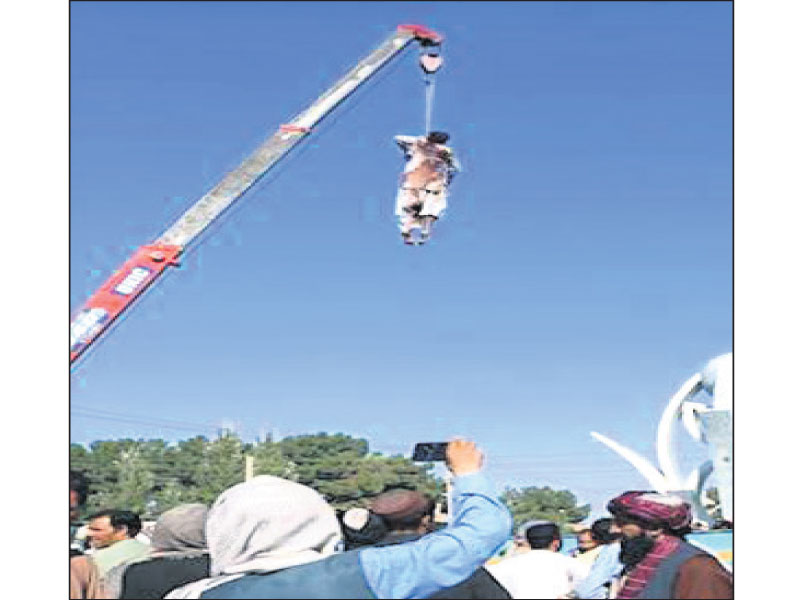 କହିବା ଅନୁଯାୟୀ ତାଲିବାନୀମାନେ ହେରତ୍ ମୁଖ୍ୟଛକକୁ ୪ଟି ମୃତଦେହ ନେଇ ଆସିଥିଲେ। ଏକ ଅପହରଣ ମାମଲାରେ ୪ ଅଭିଯୁକ୍ତଙ୍କୁ ପୋଲିସ ଧରିବା ପରେ ସେମାନଙ୍କୁ ମୃତ୍ୟୁଦଣ୍ଡ ଦିଆଯାଇଥିଲା। ପରେ ମୃତଦେହଗୁଡ଼ିକୁ ହେରତ୍କୁ ଅଣାଯାଇଥିଲା। ସେଠାରେ ଗୋଟିଏକୁ କ୍ରେନ୍ ଦ୍ୱାରା ଝୁଲାଇଦେବା ପରେ ଅନ୍ୟ ୩ ମୃତଦେହକୁ ଅନ୍ୟାନ୍ୟ ଛକକୁ ନିଆଯାଇଥିଲା। ହେରତରେ ଥିବା ତାଲିବାନ୍ ପୋଲିସ ମୁଖ୍ୟ ଜିଆଉଲହକ୍ ଜଲାଲି କହିଛନ୍ତି, ଏକ ବାପ-ପୁଅଙ୍କୁ ଅଭିଯୁକ୍ତମାନେ ଅପହରଣ କରୁଥିବାବେଳେ ପୋଲିସ ଉପରକୁ ସେମାନେ ଗୁଳି ଚଳାଇଥିଲେ। ପାଲଟା ଗୁଳିରେ ୪ ଜଣଙ୍କ ମୃତ୍ୟୁ ଘଟିଛି। ଅନ୍ୟପକ୍ଷରେ ତାଲିବାନ୍କୁ ଟାର୍ଗେଟ କରି ଶନିବାର ନଙ୍ଗରହାରରେ ଏକ କାର୍ ଉପରେ ବୋମାମାଡ଼ ହୋଇଛି। ଏଥିରେ ଜଣେ ଆହତ ହୋଇଛନ୍ତି।