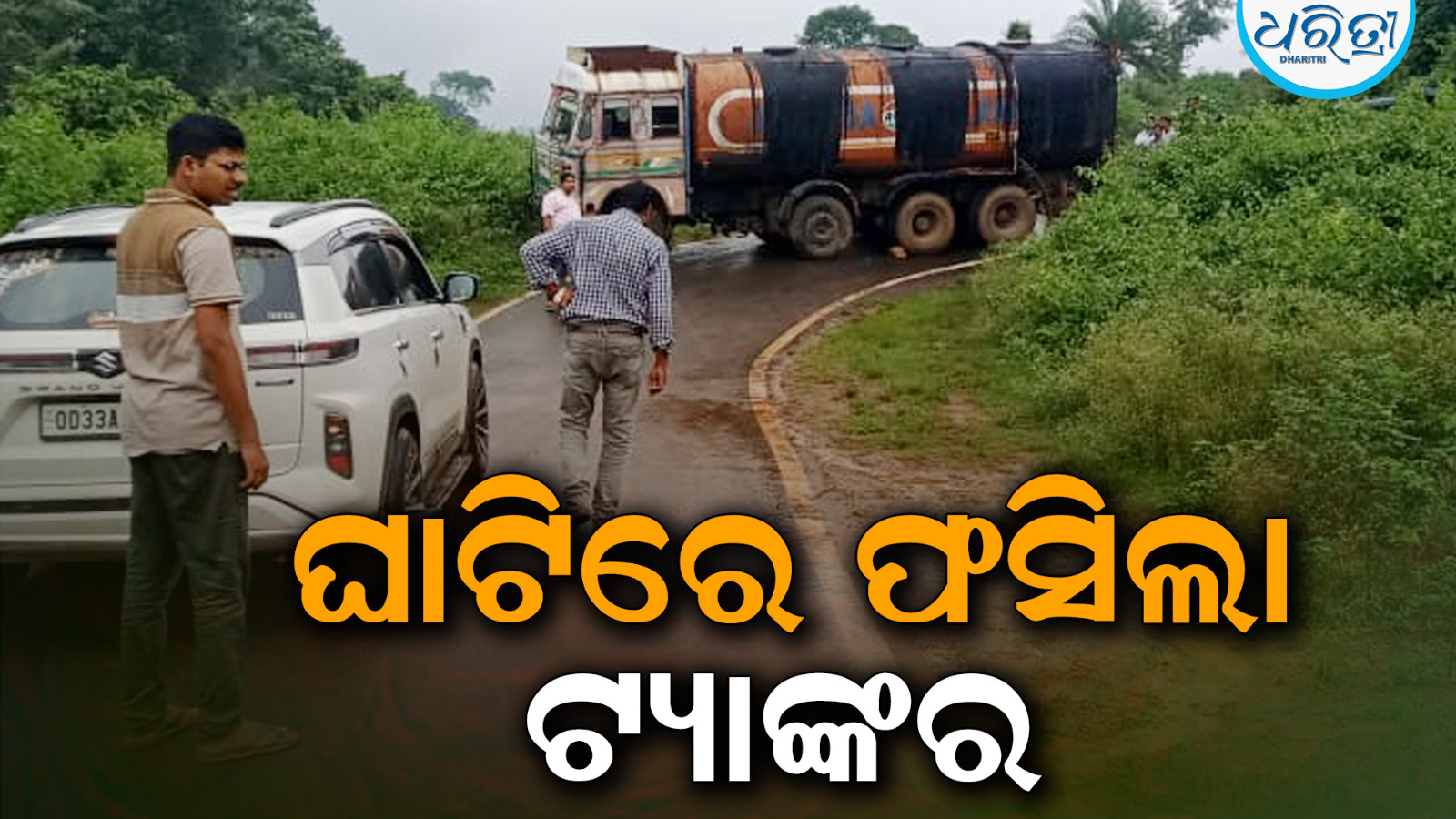 ଦାରିଙ୍ଗବାଡି, ୨୦।୭ (ଅରୁଣ ସାହୁ): କନ୍ଧମାଳ ଜିଲା ଦାରିଙ୍ଗବାଡି ଦେଇ ଯାଇଥିବା ଗୋପାଳପୁର -ରାଇପୁର ୫୯ନଂ ଜାତୀୟ ରାଜପଥର ଗାଜଲବାଡି ଘାଟିରେ ଯାତାୟାତ ଠପ ହୋଇଯାଇଛି। ଉକ୍ତ ଘାଟି ରାସ୍ତାର ଏକ ବୁଲାଣିରେ ଟ୍ୟାଙ୍କର ଫସିଯିବା କାରଣରୁ ଏଭଳି ସ୍ଥିତି ସୃଷ୍ଟି ହୋଇଛି।