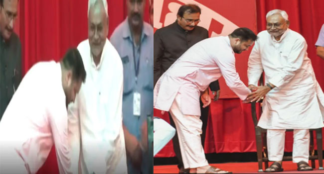 ପାଟନା,୧୦।୮: ଜେଡିୟୁ ନେତା ନୀତୀଶ କୁମାର ବୁଧବାର ୮ମ ଥର ପାଇଁ ବିହାର ମୁଖ୍ୟମନ୍ତ୍ରୀ ଭାବେ ଶପଥ ଗ୍ରହଣ କରିଛନ୍ତି। ସେହିପରି ଆରଜେଡି ନେତା ତଥା ଲାଲୁ ପ୍ରସାଦ ଯାଦବଙ୍କ ସୁପୁତ୍ର ତେଜସ୍ବୀ ଯାଦବ ମଧ୍ୟ ଦ୍ୱିତୀୟ ଥର ପାଇଁ ଉପମୁଖ୍ୟମନ୍ତ୍ରୀ ଭାବେ ଶପଥ ନେଇଛନ୍ତି। ରାଜ୍ୟପାଳ ଫଗୁ ଚୌହାନ ରାଜଭବନରେ ୨ଜଣ ନେତାଙ୍କୁ ପଦ ଓ ଗୋପନୀୟତାର ଶପଥ ପାଠ କରାଇଥିଲେ। ଏହି ଅବସରରେ ରାବ୍ରୀ ଦେବୀ, ତେଜପ୍ରତାପ ଯାଦବ ଓ ତେଜସ୍ବୀଙ୍କ ସ୍ତ୍ରୀ ରାଜଶ୍ରୀ ମଧ୍ୟ ସାମିଲ ହୋଇଥିଲେ। ତେବେ ଶପଥ ନେବା ପରେ ତେଜସ୍ବୀ ନୀତୀଶଙ୍କ ପାଦ ଛୁଇଁ ଆଶୀର୍ବାଦ ନେଇଥିବା ଦେଖିବାକୁ ମିଳିଛି। ଯାହା ଏବେ ସୋସିଆଲ ମିଡିଆରେ ଭାଇରାଲ ହେବାରେ ଲାଗିଛି। ସୂଚନାଯୋଗ୍ୟ, ୨୨ବର୍ଷରେ ଏହା ହେଉଛି ୮ମ ଥର ଯେଉଁଥିରେ ନୀତୀଶ କୁମାର ରାଜ୍ୟର ମୁଖ୍ୟମନ୍ତ୍ରୀ ହୋଇଛନ୍ତି। ୨୦୦୦ରେ ସେ ପ୍ରଥମ ୭ଦିନ ପାଇଁ ମୁଖ୍ୟମନ୍ତ୍ରୀ ହୋଇଥିଲେ। ଏହାପୂର୍ବରୁ ମଧ୍ୟ ନୀତୀଶ ମୁଖ୍ୟମନ୍ତ୍ରୀ ଓ ତେଜସ୍ବୀ ଉପମୁଖ୍ୟମନ୍ତ୍ରୀ ହୋଇଥିଲେ। ଏହାପରେ ୨୦୧୭ରେ ନୀତୀଶ ମହାମେଣ୍ଟ ଛାଡ଼ି ଏନ୍ଡିଏରେ ଯୋଗଦେଇଥିଲେ।