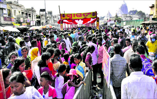 ପୁରୀ ଅଫିସ, ୧୬ା୧:ଶ୍ରୀମନ୍ଦିରରେ ପୁଣି ଘଟିଛି ଅଘଟଣ। ରବିବାର ପ୍ରବଳ ଭିଡ଼ ଯୋଗୁ ଶ୍ରୀମନ୍ଦିର ପରିସରସ୍ଥ ବାହାର କାଠ ନିକଟରେ ଠେଲାପେଲା ଘଟି ୨ଜଣ ଭକ୍ତ ଅଣନିଃଶ୍ୱାସୀ ହୋଇପଡ଼ିବା ସହ ଆହତ ହୋଇଛନ୍ତି। ସେମାନେ ହେଲେ କଟକର ଦିବ୍ୟା ସାହୁ (୧୬) ଓ ପୁରୀ ହାଡ଼ଗଡ଼ିଆ ସାହିର ସୁଲୋଚନା ସାହୁ (୬୫)। ଉଭୟଙ୍କୁ ଜିଲା ମୁଖ୍ୟ ଚିକିତ୍ସାଳୟରେ ଭର୍ତ୍ତି କରାଯାଇଛି। ୨୦ ଦିନ ତଳେ ଏଭଳି ଏକ ଘଟଣା ଘଟିଥିଲେ ମଧ୍ୟ ପ୍ରଶାସନ ଚେତିନାହିଁ।