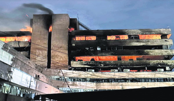 ଭୋପାଳ,୧୩।୬: ମଧ୍ୟପ୍ରଦେଶ ଭୋପାଳରେ ଥିବା ବହୁ ମହଲା ବିଶିଷ୍ଟ ସରକାରୀ କାର୍ଯ୍ୟାଳୟ ସାତପୁରା ଭବନରେ ସୋମବାର ଅଗ୍ନିକାଣ୍ଡ ଘଟିଛି। ୮ ଘଣ୍ଟାରୁ ଊର୍ଦ୍ଧ୍ୱ ସମୟ ଧରି ବିଲ୍ଡିଂ ଜଳୁଥିବାବେଳେ ନିଆଁ ଛାତ ପର୍ଯ୍ୟନ୍ତ ବ୍ୟାପିଯାଇଛି। ଅଗ୍ନିଶମ ବିଭାଗ ଘଟଣାସ୍ଥଳରେ ପହଞ୍ଚି ନିଆଁକୁ ଆୟତ୍ତ କରିବାକୁ ଚେଷ୍ଟା ଚଳାଇଛି। ପ୍ରତିରକ୍ଷା ମନ୍ତ୍ରୀ ରାଜନାଥ ସିଂଙ୍କ ନିର୍ଦ୍ଦେଶକ୍ରମେ ଘଟଣାସ୍ଥଳକୁ ବାୟସେନାର ଏଏନ୍-୩୨ ବିମାନ ଏବଂ ଏମ୍ଆଇ-୧୫ ଚପର୍ ଭାପାଳ ପଠାଯାଇଛି। ଅନ୍ୟପକ୍ଷେ ଘଟଣା ସମ୍ପର୍କରେ ମୁଖ୍ୟମନ୍ତ୍ରୀ ଶିବରାଜ ସିଂ ଚୌହାନ ପ୍ରଧାନମନ୍ତ୍ରୀ ନରେନ୍ଦ୍ର ମୋଦିଙ୍କୁ ଅବଗତ କରାଇଛନ୍ତି। ବିଲ୍ଡିଂରେ ଥିବା ଲୋକଙ୍କୁ ସୁରକ୍ଷିତ ଭାବେ ବାହାର କରାଯାଇଥିବାବେଳେ ଘଟଣାରେ ମୃତାହତ ନେଇ କୌଣସି ସୂଚନା ମିଳିନାହିଁ। ବିଲ୍ଡିଂର ତୃତୀୟ ମହଲାରେ ଥିବା ଆଦିବାସୀ ବିକାଶ ବିଭାଗୀୟ ଆଞ୍ଚଳିକ କାର୍ଯ୍ୟାଳୟରୁ ନିଆଁ ଲାଗି ଚାରିଆଡ଼େ ବ୍ୟାପିଥିବା କୁହାଯାଉଛି। ନିଆଁ ଲାଗିବା ଯୋଗୁ ବିଲ୍ଡିଂରେ ଥିବା ଏକାଧିକ ଗ୍ୟାସ୍ ସିଲିଣ୍ଡର ବିସ୍ଫୋରଣ ହୋଇଥିବା ସ୍ଥାନୀୟ ଲୋକେ କହିଛନ୍ତି। ରାଜ୍ୟ ସ୍ବାସ୍ଥ୍ୟ ବିଭାଗ କାର୍ଯ୍ୟାଳୟ ଉକ୍ତ ବିଲ୍ଡିଂରେ ପରିଚାଳିତ ହେଉଥିବାବେଳେ ଅନେକ ସରକାରୀ ଦସ୍ତାବିଜ ଜଳି ନଷ୍ଟ ହୋଇଯାଇଛି। ଶିବରାଜ ସିଂ ଚୌହାନ ସଚିବମାନଙ୍କୁ ନେଇ ଏକ ଯାଞ୍ଚ କମିଟି ଗଠନ କରାଯାଇଛି।
