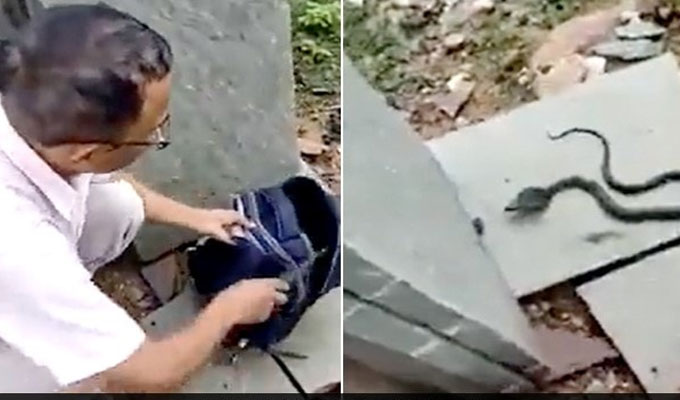 ସ୍କୁଲ ବ୍ୟାଗ୍‌ରେ ଭୟଙ୍କର ସାପ, ଭିଡିଓ ଦେଖିଲେ…
