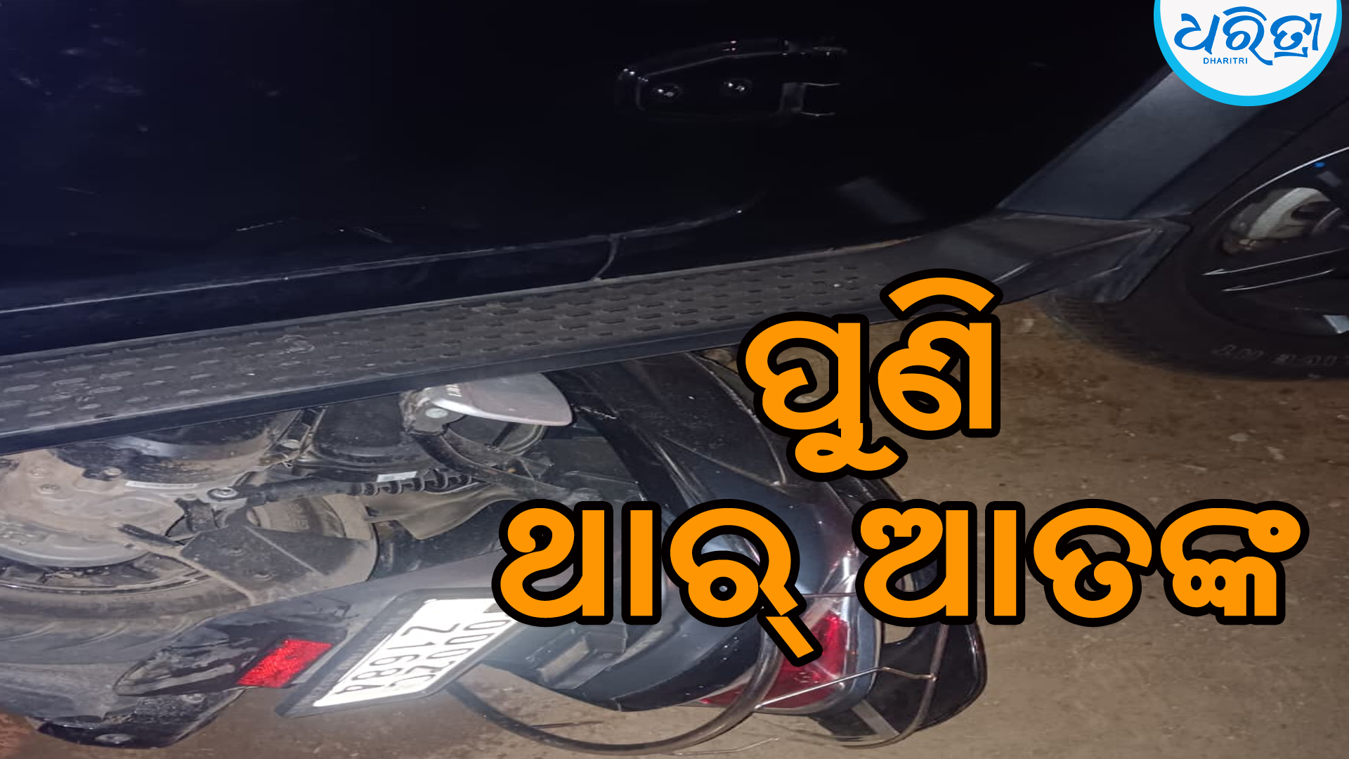 ଭୁବନେଶ୍ୱର,୨୦ା୧୦(ସତ୍ୟଜିତ ରାଉତ): ରାଜଧାନୀରେ ପୁଣି ଥାର୍ ଆତଙ୍କ ଦେଖିବାକୁ ମିଳିଛି। ଲକ୍ଷ୍ମୀସାଗର ଝାରପଡା କେନାଲ ରୋଡରେ ଏକ ଥାର୍ (ନଂ.ଓଡି୩୩ଏଟି୧୨୩୩) ଦ୍ରୁତଗତିରେ ଆସି ଦୁର୍ଘଟଣା ଘଟାଇଛି। ଏଥିରେ କେହି ମୃତାହତ ହୋଇ ନ ଥିଲେ ମଧ୍ୟ ଏକ ସ୍କୁଟି କ୍ଷତି ଗ୍ରସ୍ତ ହୋଇଛି।