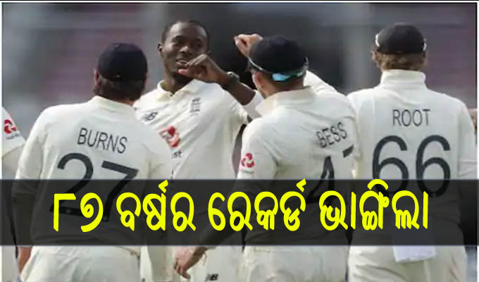 ଚେନ୍ନାଇ,୯।୨: ପ୍ରଥମ ଟେଷ୍ଟ ମ୍ୟାଚରେ ଇଂଲଣ୍ଡ ଭାରତକୁ ୨୨୭ ରନରେ ପରାସ୍ତ କରିଛି। ଏହି ବିଜୟ ସହିତ ୪ ମ୍ୟାଚ ବିଶିଷ୍ଟ ସିରିଜରେ ୧-୦ ଅଗ୍ରଣୀ ହାସଲ କରିଛି ଇଂଲଣ୍ଡ। ଏହି ବିଜୟ ସହିତ ଇଂଲଣ୍ଡ ଅନେକ ରେକର୍ଡ ସୃଷ୍ଟି କରିଛି। ଚେନ୍ନାଇରେ ଭାରତକୁ ସର୍ବାଧିକ ବ୍ୟବଧାନରେ ପରାସ୍ତ କରିବାରେ ଏହା ଏକ ନୂଆ ରେକର୍ଡ ସୃଷ୍ଟି କରିଛି ଭ୍ରମଣକାରୀ ଦଳ। ୮୭ ବର୍ଷ ପୁରୁଣା ରେକର୍ଡ ଇଂଲଣ୍ଡ ନାମରେ ଥିଲା। ୧୯୩୪ ମସିହାରେ ୧୦ରୁ ୧୪ ଫେବୃଆରୀ ପର୍ଯ୍ୟନ୍ତ ଚେନ୍ନାଇ ଖେଳାଯାଇଥିବା ଟେଷ୍ଟ ମ୍ୟାଚରେ ସେ ଭାରତକୁ ୨୦୨ ରନରେ ପରାସ୍ତ କରିଥିଲା ଇଂଲଣ୍ଡ। ଚେନ୍ନାଇର ଏମ ଚିଦାମ୍ବରମ ଷ୍ଟାଡିୟମରେ ଏପର୍ଯ୍ୟନ୍ତ ୩୩ଟି ଟେଷ୍ଟ ମ୍ୟାଚ ଖେଳାଯାଇଛି। ଭାରତ ଏହି ମ୍ୟାଚଗୁଡିକ ମଧ୍ୟରୁ ୧୪ ଟି ଜିତିଛି ଏବଂ ୭ରେ ପରାଜୟର ସମ୍ମୁଖୀନ ହୋଇଛି। ଭାରତ ଏଠାରେ ହାରିଥିବା ୭ଟି ମ୍ୟାଚ ମଧ୍ୟରୁ ୪ଟିରେ ଇଂଲଣ୍ଡ ଭାରତକୁ ପରାସ୍ତ କରିଛି। ଅଷ୍ଟ୍ରେଲିଆ, ପାକିସ୍ଥାନ ଏବଂ ୱେଷ୍ଟଇଣ୍ଡିଜ ମଧ୍ୟ ଏଠାରେ ଥରେ ଭାରତକୁ ପରାସ୍ତ କରିଛନ୍ତି। ଚେନ୍ନାଇରେ ପ୍ରଥମ ଟେଷ୍ଟ ୧୯୩୪ ମସିହାରେ ଭାରତ ଏବଂ ଇଂଲଣ୍ଡ ମଧ୍ୟରେ ଖେଳାଯାଇଥିଲା। ଇଂଲଣ୍ଡ ଏହି ମ୍ୟାଚକୁ ୨୦୨ ରନରେ ଜିତି ନେଇଥିଲା।