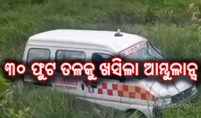 ଚାନ୍ଦବାଲି,୭ା୯(ଡି.ଏନ୍.ଏ.): ଭଦ୍ରକ ଜିଲା ତିହିଡ଼ିରୁ ଚାନ୍ଦବାଲି ବାଂଶଡ଼ା ଅଭିମୁଖେ ଏକ ମୃତଦେହ ନେବା ପାଇଁ ଆମ୍ବୁଲାନ୍ସଟି ଆସୁଥିବା ବେଳେ ନାଲୁଗୁଣ୍ଡା ଛକ ନିକଟରେ ଭାରସାମ୍ୟ ହରାଇ ୩୦ ଫୁଟ ତଳକୁ ଖସିପଡ଼ିଛି। ସ୍ଥାନୀୟ ଲୋକେ ସେଠାରେ ପହଞ୍ଚି ଗାଡ଼ି ଡ୍ରାଇଭରଙ୍କୁ ଉଦ୍ଧାର କରିଥିଲେ। ତେବେ ଡ୍ରାଇଭର ଜଣଙ୍କ ନିଶାସକ୍ତ ଅବସ୍ଥାରେ ଗାଡ଼ି ଚଳାଉଥିବାରୁ ଏଭଳି ଦୁର୍ଘଟଣା ଘଟିଥିବା ସ୍ଥାନୀୟ ଲୋକେ କହିଛନ୍ତି। ତେବେ ଏହି ଦୁର୍ଘଟଣାରେ ଅଳ୍ପକେ ବର୍ତ୍ତି ଯାଇଛନ୍ତି ଆମ୍ବୁଲାନ୍ସ ଡ୍ରାଇଭର।