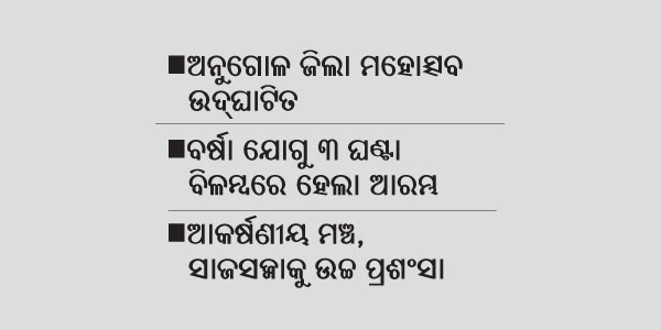 ଅନୁଗୋଳ ଜିଲା ସଂସ୍କୃତି ପରିଷଦ ଆନୁକୂଲ୍ୟରେ ଅନୁଗୋଳ ଷ୍ଟାଡିୟମଠାରେ ଶୁକ୍ରବାରଠାରୁ ଆରମ୍ଭ ହୋଇଛି ନବମ ଜିଲା ମହୋତ୍ସବ-୨୦୨୨। ଅପରାହ୍ନ ୫ଟା ୩୦ରୁ ଏହି କାର୍ଯ୍ୟକ୍ରମ ଆରମ୍ଭ ହୋଇଥିଲା। ବିଭିନ୍ନ ବ୍ଲକରୁ ଆସିଥିବା କଳାକାରମାନେ ସାଂସ୍କୃତିକ କାର୍ଯ୍ୟକ୍ରମ ପରିବେଷଣ କରିଥିଲେ। ହେଲେ ବର୍ଷା ଯୋଗୁ ଏହା ଅଟକି ଯାଇଥିଲା। ଏପରି କି ସନ୍ଧ୍ୟା ୬ଟାରେ ହେବାକୁ ଥିବା ଉଦ୍ଘାଟନୀ କାର୍ଯ୍ୟକ୍ରମ ୩ ଘଣ୍ଟା ବିଳମ୍ବରେ ରାତି ୯ଟାରେ ଆରମ୍ଭ ହୋଇଥିଲା। ମୁଖ୍ୟ ଅତିଥି ଭାବେ ଓଡ଼ିଶା ବିଧାନସଭାର ଉପବାଚସ୍ପତି ରଜନୀକାନ୍ତ ସିଂହ, ସମ୍ମାନିତ ଅତିଥି ଭାବେ ତାଳଚେର ବିଧାୟକ ବ୍ରଜକିଶୋର ପ୍ରଧାନ, ଛେଣ୍ଡିପଦା ବିଧାୟକ ସୁଶାନ୍ତ କୁମାର ବେହେରା, ଅନୁଗୋଳ ପୌର ଅଧ୍ୟକ୍ଷ ଅକ୍ଷୟ କୁମାର ସାମନ୍ତ, ନାଲ୍କୋ ଇଡି ଅମ୍ବିକା ପ୍ରସାଦ ପଣ୍ଡା, ଏମ୍ସିଏଲ୍ ଅଧିକାରୀ ପି.ବି. ରେଡ୍ଡି, ଏସ୍ପି ଜଗମୋହନ ମୀନା, ଜିଲା ପ୍ରକଳ୍ପ ଅଧିକାରୀ ଦିଲୀପ କୁମାର ସାହୁ ପ୍ରମୁଖ ଯୋଗ ଦେଇଥିଲେ। ଜିଲାପାଳ ତଥା ଜିଲା ସଂସ୍କୃତି ପରିଷଦ ଅଧ୍ୟକ୍ଷ ସିଦ୍ଧାର୍ଥ ଶଙ୍କର ସ୍ବାଇଁ ଏଥିରେ ସଭାପତିତ୍ୱ କରିଥିଲେ। ନିଜ ଉଦ୍ଘାଟନୀ ଭାଷଣରେ ମୁଖ୍ୟ ଅତିଥି ସିଂହ ମହୋତ୍ସବରେ ବର୍ଷା ଏକ ଶୁଭ ସଂକେତ ବୋଲି କହିଥିଲେ। ସମ୍ମାନିତ ଅତିଥି ବିଧାୟକ ପ୍ରଧାନ ଜିଲା ମହୋତ୍ସବର ଆକର୍ଷଣୀୟ ଆୟୋଜନକୁ ଗର୍ବର ବିଷୟ ବୋଲି କହିଥିଲେ। ବିଧାୟକ ବେହେରା ଅନୁଗୋଳର ସ୍ବାଭିମାନ ସର୍ବଦା ବଜାୟ ରହୁ ବୋଲି ଆଶାବ୍ୟକ୍ତ କରିଥିଲେ। ପୌରାଧ୍ୟକ୍ଷ ସାମନ୍ତ ଜିଲାକୁ ପ୍ରଦୂଷଣ ଓ ପଲିଥିନ ମୁକ୍ତ କରିବାକୁ ଆହ୍ବାନ ଦେଇଥିଲେ। ଏହାପରେ ରଙ୍ଗାରଙ୍ଗ ସାଂସ୍କୃତିକ କାର୍ଯ୍ୟକ୍ରମ ଆରମ୍ଭ ହୋଇଥିଲା। ଓଡ଼ିଆ ଗାୟିକା ନାଭ୍ୟା ଜାଇତିଙ୍କ କଣ୍ଠରେ ପୁଷ୍ପା ଚଳଚ୍ଚିତ୍ରର ହିଟ୍ ଗୀତ ଦର୍ଶକମାନଙ୍କୁ ମତୁଆଲା କରିଦେଇଥିଲା। ହାସ୍ୟାଭିନେତା ନନ୍ସେନ୍ସ ମଣିଙ୍କ ମଜାଳିଆ କଥା ସମସ୍ତଙ୍କ ହୃଦୟକୁ ଛୁଇଁ ଯାଇଥିଲା। ତେବେ କାର୍ଯ୍ୟକ୍ରମର ମୁଖ୍ୟ ଆକର୍ଷଣ ବଲିଉଡ୍ ଗାୟକ ଷ୍ଟେବିନ୍ ବେନ୍ ମଞ୍ଚ ଉପରକୁ ଆସିବା ମାତ୍ରେ ଭରପୂର ଷ୍ଟାଡିୟମ ତାଳିରେ ତାଙ୍କୁ ସ୍ବାଗତ କରିଥିଲା। ଷ୍ଟେବିନ ତାଙ୍କ ରିଲିଜ ଗୀତ ‘ତେରି ନଜର୍ ନେ କ୍ୟା କର୍ଦିଆ, ମୁଝ୍ସେ ମୁଝେ ଯୁଦା କରିଦିଆ’ ଗୀତରେ ଶ୍ରୋତାମଣ୍ଡଳୀଙ୍କୁ ମନ୍ତ୍ରମୁଗ୍ଧ କରିଦେଇଥିଲେ। ଏଥିସହ ‘ଯବ୍ ମେ ବାଦଲ ବନ୍ଯାଉଁ, ତୁମ୍ ଭି ବାରିଷ୍ ବନଜାନା’, ଚାରୋ ଦିନକା, ୟାରୋ ରବା, ତେରେ ଲିଏ, ଗୁଲାବି ଆଖେଁ ଆଦି ସଙ୍ଗୀତ ପରିବେଷଣ କରି ସେ ଦର୍ଶକଙ୍କ ମନ ଜିଣି ନେଇଥିଲେ।