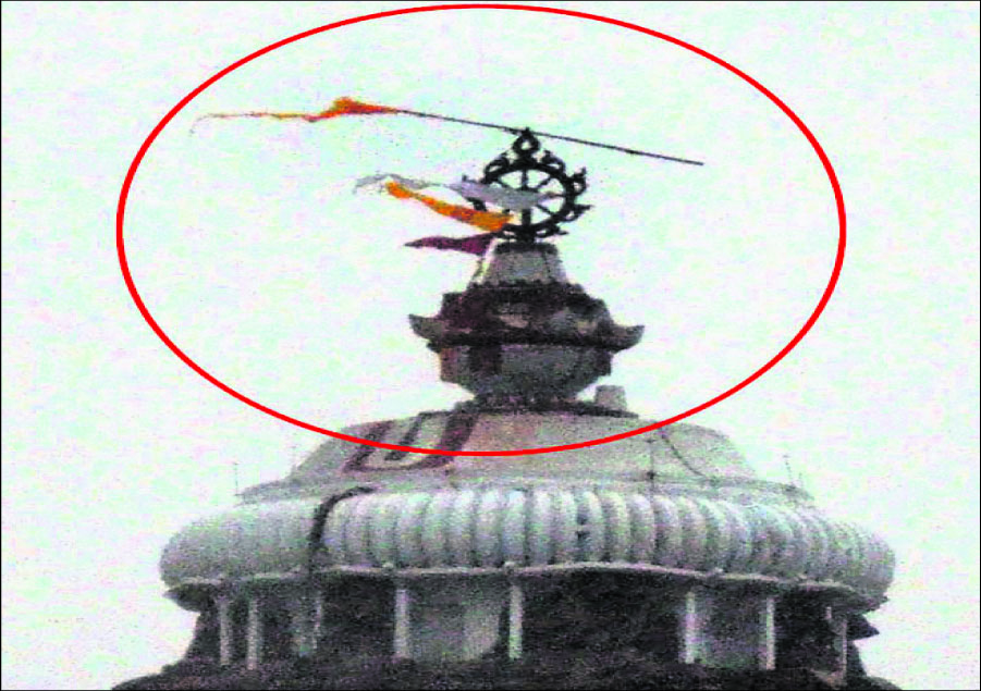 ପୁରୀ ଅଫିସ, ୧୨।୫:କାଳବୈଶାଖୀ ବର୍ଷାର ପ୍ରଭାବ ମଙ୍ଗଳବାର ପୁରୀରେ ଦେଖିବାକୁ ମଳିଛି। କାଳବୈଶାଖୀ ତାଣ୍ଡବ ଯୋଗୁ ଶ୍ରୀମନ୍ଦିର ନୀଳଚକ୍ରରେ ଲାଗିଥିବା ପତିତପାବନ ବାନାର ବାଉଁଶ ଭାଙ୍ଗିଯାଇଥିଲା, ଯାହାଫଳରେ ପତିତପାବନ ବାନା ଅଧା ନଇଁ ଯାଇଥିଲା। ମଙ୍ଗଳବାର ମଧ୍ୟାହ୍ନରେ ହଠାତ୍ ପୁରୀ ସହର କଳା ବାଦଲରେ ଛାଇ ହୋଇଯାଇଥିଲା। କିଛି ସମୟ ପରେ ପ୍ରବଳ ବେଗରେ ପବନ ସହ ବର୍ଷା ହୋଇଥିଲା। ପବନର ବେଗ ତୀବ୍ର ଥିବାରୁ ନୀଳଚକ୍ରରେ ଲାଗିଥିବା ପତିତପାବନ ବାନାର ବାଉଁଶ ଭାଙ୍ଗିଯାଇଥିଲା। ମାତ୍ର ଅଧାଭଙ୍ଗା ଅବସ୍ଥାରେ ନୀଳଚକ୍ରରେ ଲାଗିରହିଥିଲା। ଦୀର୍ଘ ଏକ ଘଣ୍ଟା ଧରି ବର୍ଷା ହେବା ଫଳରେ ପୁରୀ ବଡ଼ଦାଣ୍ଡ ସମେତ ସାହିଗଳି କନ୍ଦି ଜଳମୟ ହୋଇଥିଲା। ତେବେ ପତିତପାବନ ବାନା ଉଡ଼ି ନ ଥିବାରୁ ଏବଂ ନୀଳଚକ୍ର ସହ ଲାଗିରହିଥିବାରୁ ମହାପ୍ରଭୁଙ୍କ ନୀତିକାନ୍ତିରେ କୌଣସି ଅସୁବିଧା ହୋଇ ନ ଥିଲା। ବର୍ଷା କମିବା ପରେ ଚୂନରା ସେବାୟତଙ୍କ ପକ୍ଷରୁ ନଇଁଯାଇଥିବା ବାଉଁଶକୁ ପୁଣି ନୀଳଚକ୍ରରେ ବନ୍ଧାଯାଇଥିଲା। ତେବେ ମହାମାରୀ କରୋନା ସମୟରେ ଏପରି ଅଘଟଣ ଘଟିଥିବାରୁ ଆଗକୁ କିଛି ବିପତ୍ତି ଆସୁଛି ବୋଲି ଜନସାଧାରଣ ଆଶଙ୍କାରେ କହିଛିନ୍ତି ।