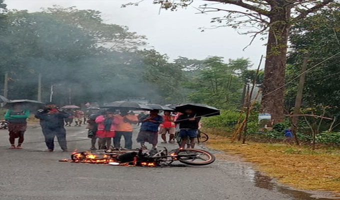 ଠାକୁରମୁଣ୍ଡା,୫।୧୨(ଡି.ଏନ୍‌.ଏ.): ମୟୂରଭଞ୍ଜ ଜିଲା ଠାକୁରମୁଣ୍ଡା-ଆନନ୍ଦପୁର ରାସ୍ତାର ସାତକୋଶିଆଠାରେ ରାସ୍ତାରେ ଯାଉଥିବା ଏକ ବାଇକ ଉପରେ ବିଦ୍ୟୁତ ତାର ଛିଣ୍ଡି ପଡିଛି। ହେଲେ ବାଇକ୍‌ ଚାଳକ ଅଳ୍ପକେ ବର୍ତ୍ତି ଯାଇଛନ୍ତି। ହେଲେ ତାର ସଂସ୍ପର୍ଶରେ ଆସି ବାଇକ ସପୂର୍ଣ୍ଣ ଭସ୍ମ ହୋଇଯାଇଛି। ସ୍ଥାନୀୟ ଲୋକେ ଉତ୍ତ୍ୟକ୍ତ ହୋଇ ସାତକୋଶିଆ ଠାରେ ଠାକୁରମୁଣ୍ଡା- ଆନନ୍ଦପୁର ରାସ୍ତା ଅବରୋଧ କରିଛନ୍ତି।