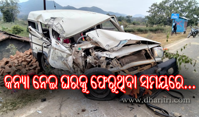 ସୂଚନାନୁଯାୟୀ, କନ୍ୟାକୁ ନେଇ ଫେରୁଥିବା ଆମପାଣି ଥାନା ବିଜୁ ଏକ୍ସପ୍ରେସ ଓ୍ବେ ରାସ୍ତା ଭୁର୍ଷାଗୁଡ଼ା ନିକଟରେ ଏକ ବୋଲେରୋ ଗାଡ଼ି ସାମ୍ନା ପଟୁ ଆସୁଥିବା ଏକ ଟ୍ରକ ସହ ମୁହାଁମୁହିଁ ଧକ୍କା ହୋଇଥିଲା। ଏହି ଦୁର୍ଘଟଣାରେ ବୋଲେରୋ ଡ୍ରାଇଭର ରୁକ୍ମଣ ସାହୁ (୩୫)ଙ୍କ ମୃତ୍ୟୁ ହୋଇଛି। ବୋଲେରୋରେ ବସିଥିବା ବରକନ୍ୟାଙ୍କ ସମେତ ଅନ୍ୟ ୫ରୁ ୬ ଜଣ ଗୁରୁତର ହୋଇଛନ୍ତି। ଖବର ପାଇ ଆମପାଣି ପୋଲିସ ଡ୍ରାଇଭରଙ୍କୁ ଉଦ୍ଧାର କରି କୋକସରା ହସ୍ପିଟାଲକୁ ଚିକିତ୍ସା ପାଇଁ ନେବା ବେଳେ ହସ୍ପିଟାଲ ପହଞ୍ଚିବା ପୂର୍ବରୁ ଡ୍ରାଇଭରଙ୍କ ମୃତ୍ୟୁ ହୋଇଥିଲା। ଅନ୍ୟ ସମସ୍ତେ ଗୁରୁତର ଅବସ୍ଥାରେ ଧର୍ମଗଡ଼ ହସ୍ପିଟାଲରେ ଚିକିତ୍ସିତ ହେଉଥିବା ଜଣାପଡ଼ିଛି। ମୃତ ଡ୍ରାଇଭର ଛତିଶଗଡ଼ର ବୋଲି ପୋଲିସ ସୂଚନା ଦେଇଛି।