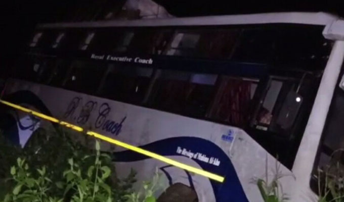 ଗଜପତି,୩୦।୯: ଗଜପତି ଜିଲା ମୋହନା ଥାନା ହିକିରିକୁପା ଗାଁ ନିକଟରେ ଶୁକ୍ରବାର ବିଳମ୍ବିତ ରାତିରେ ଏକ ଯାତ୍ରୀବାହୀ ବସ୍ ରାସ୍ତା ତଳକୁ ଖସିପଡ଼ିଛି। ଏଥିରେ ୩୫ ଯାତ୍ରୀ ଅଳ୍ପକେ ବର୍ତ୍ତି ଯାଇଛନ୍ତି। ଭାରସାମ୍ୟ ହରାଇ ବସ୍ଟି ରାସ୍ତା ତଳକୁ ଖସି ପଡ଼ିଥିଲା।