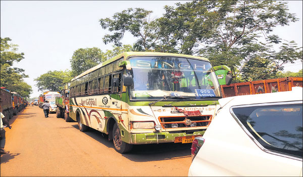 କାଳିଆପାଣି,୩ା୬(ଡି.ଏନ.ଏ.): ଯାଜପୁର ଜିଲାର କ୍ରୋମାଇଟ୍ ଖଣି ଅଞ୍ଚଳରେ ଟ୍ରାଫିକ୍ ସମସ୍ୟା ଅସମ୍ଭାଳ ହୋଇପଡ଼ିଛି। ଫଳରେ ଶୁକ୍ରବାର ବସ୍ ଯାତ୍ରୀଙ୍କ ସହ ଖଣି କର୍ମଚାରୀ ଓ ଅଧିକାରୀମାନେ ଠିକ୍ ସମୟରେ କାର୍ଯ୍ୟସ୍ଥଳରେ ପହଞ୍ଚତ୍ ପାରିନାହାନ୍ତି। ଏଥିଯୋଗୁ ଖଣି କାର୍ଯ୍ୟ ପ୍ରଭାବିତ ହୋଇଛି। ଯାତ୍ରୀମାନେ ଠିକ୍ ସମୟରେ ଗନ୍ତବ୍ୟସ୍ଥଳରେ ପହଞ୍ଚତ୍ ପାରି ନ ଥିବାରୁ ସେମାନଙ୍କ କାର୍ଯ୍ୟ ବାଧାପ୍ରାପ୍ତ ହୋଇଥିବା ଅଭିଯୋଗ ହୋଇଛି।