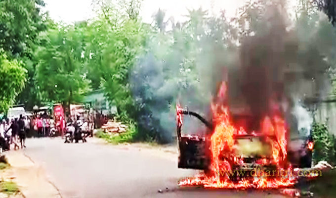 ଚୌଦ୍ୱାର,୨୪ା୬(ଡି.ଏନ୍.ଏ.) : ଚୌଦ୍ୱାର ଚାରବାଟିଆ ଆଗ୍ରାହାଟ ମୁଖ୍ୟ ରାସ୍ତାରେ ବୁଧବାର ମଧ୍ୟାହ୍ନରେ ହଠାତ୍ ଏକ ଚଳନ୍ତା କାର୍ରେ ନିଆଁ ଲାଗିଯାଇଛି। କାର୍ ଚାଳକ ଭୟରେ ପଳାଇଯାଇଥିବା ଦେଖାଣାହାରୀ କହିଛନ୍ତି।