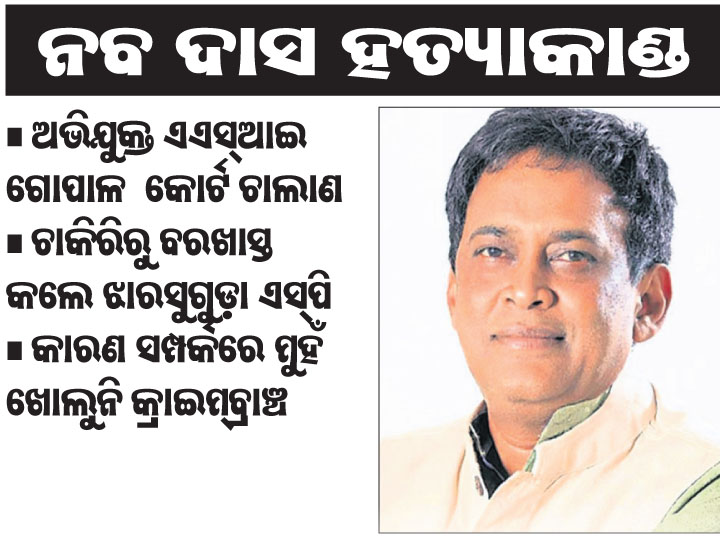 ଅନ୍ୟପକ୍ଷରେ ମନ୍ତ୍ରୀଙ୍କୁ ଗୁଳି କରାଯିବା ସମୟରେ ଘଟଣାସ୍ଥଳରେ ଉପସ୍ଥିତ ଥିବା ବ୍ରଜରାଜନଗର ଥାନା ଅଧିକାରୀ ପ୍ରଦ୍ୟୁମ୍ନ ସ୍ବାଇଁ ଥାନାରେ ଏତଲା ଦେଇଛନ୍ତି। ମନ୍ତ୍ରୀଙ୍କୁ ହତ୍ୟା ଉଦ୍ଦେଶ୍ୟରେ ଏଏସ୍ଆଇ ଗୋପାଳ ଗୁଳି କରିଥିଲେ ବୋଲି ଅଭିଯୋଗରେ ଦର୍ଶାଯାଇଛି। ମନ୍ତ୍ରୀ ନବ ଦାସଙ୍କ କାର୍ ଗାନ୍ଧୀ ଛକ ନିକଟରେ ରବିବାର ମଧ୍ୟାହ୍ନ ୧୨ଟା ୧୫ମିନିଟରେ ପହଞ୍ଚତ୍ଥିଲା। ତାଙ୍କୁ କାର୍ ଭିତରୁ ସମର୍ଥକମାନେ ପୁଷ୍ପମାଲ୍ୟ ଦେଇ ପାଛୋଟି ଆଣିବା ସମୟରେ ଟ୍ରାଫିକ୍ ନିୟନ୍ତ୍ରଣ ଦାୟିତ୍ୱରେ ଥିବା ଏଏସ୍ଆଇ ଗୋପାଳ ନବଙ୍କୁ ଅତି ନିକଟରୁ ୯ଏମ୍ଏମ୍ ସର୍ଭିସ ପିସ୍ତଲ୍ରୁ ଗୁଳି କରିଥିଲେ। ଗୁଳିଟି ନବଙ୍କ ଛାତିରେ ବାଜିବାରୁ ସେ ଘଟଣାସ୍ଥଳରେ ଟଳି ପଡ଼ିଥିଲେ। ଆଇଆଇସି ସ୍ବାଇଁ ଏବଂ ରାମପୁର ପୋଲିସ ଫାଣ୍ଡିର କନଷ୍ଟେବଳ କେ.ସି. ପ୍ରଧାନ ଯେତେବେଳେ ଗୋପାଳଙ୍କୁ କାବୁ କରିବାକୁ ଚେଷ୍ଟା କରିଥିଲେ, ସେ ଆଉ ୨ରାଉଣ୍ଡ ଗୁଳି ଚଳାଇଥିଲେ। ଏଥିରେ ଥାନାଧିକାରୀଙ୍କ ହାତ ଆଙ୍ଗୁଠିରେ କ୍ଷତ ସୃଷ୍ଟି ହେବା ସହ ଜୀବନ ନାୟକ ନାମକ ଜଣେ ଯୁବକ ମଧ୍ୟ ଆହତ ହୋଇଥିବା ଅଭିଯୋଗରେ ଉଲ୍ଲେଖ ରହିଛି। ଅଭିଯୁକ୍ତ ଗୋପାଳଙ୍କ ଠାରୁ ପିସ୍ତଲ ଜବତ କରାଯିବା ସହ ସୁରକ୍ଷା ଦୃଷ୍ଟିରୁ ତାଙ୍କୁ ତୁରନ୍ତ ଘଟଣାସ୍ଥଳରୁ ସୁନ୍ଦରଗଡ଼ ରିଜର୍ଭ ପୋଲିସ ଲାଇନ୍କୁ ନିଆଯାଇ ସେଠାରେ ରଖାଯାଇଥିଲା। ସେଠାରେ ସୁନ୍ଦରଗଡ଼ ଏସ୍ପି ଦାୟିତ୍ୱରେ ଥିବା ରାଉରକେଲା ଏସ୍ପି ମୁକେଶ କୁମାର ଭାମୁ ଏବଂ ଅନ୍ୟ ବରିଷ୍ଠ ଅଧିକାରୀମାନେ ଉପସ୍ଥିତ ଥିଲେ। ଅପରପକ୍ଷରେ ଗୋପାଳ କାହିଁକି ଗୁଳି କଲେ, ମନ୍ତ୍ରୀ ଦାସଙ୍କ ସହ ତାଙ୍କର ପୂର୍ବରୁ ଶତ୍ରୁତା ଥିଲା କି ନାହିଁ, ସେ ସମ୍ପର୍କରେ ଅଧିକ ତଦନ୍ତ ପାଇଁ ୭ଦିନ ରିମାଣ୍ଡରେ ନେବାକୁ କ୍ରାଇମ୍ବ୍ରାଞ୍ଚ ପକ୍ଷରୁ କୋର୍ଟରେ ଆବେଦନ କରାଯିବ ବୋଲି ଜଣାପଡ଼ିଛି।