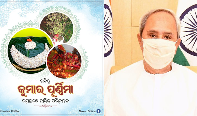 ଭୁବନେଶ୍ୱର,୨୦ା୧୦(ବ୍ୟୁରୋ): ଆଜି ହେଉଛି ପବିତ୍ର କୁମାର ପୂର୍ଣ୍ଣିମା। ଏହି ଅବସରରେ ସମସ୍ତଙ୍କୁ ଶୁଭେଚ୍ଛା ଓ ଅଭିନନ୍ଦନ ଜଣାଇଛନ୍ତି ମୁଖ୍ୟମନ୍ତ୍ରୀ ନବୀନ ପଟ୍ଟନାୟକ। ସମସ୍ତଙ୍କ ସୁରକ୍ଷା ପାଇଁ କୋଭିଡ୍ ନିୟମ ପାଳନ କରି ପୂଜାରେ ସାମିଲ ହେବାକୁ ମୁଖ୍ୟମନ୍ତ୍ରୀ ନିବେଦନ କରିଛନ୍ତି। ପ୍ରଭୁଙ୍କ ଅପାର କରୁଣାରୁ ସମସ୍ତଙ୍କ ମନସ୍କାମନା ପୂର୍ଣ୍ଣ ହେବା ସହ ଜୀବନ ସୁଖ, ଶାନ୍ତିରେ ଭରିଯାଉ ବୋଲି ମୁଖ୍ୟମନ୍ତ୍ରୀ ଶୁଭକାମନା କରିଛନ୍ତି।