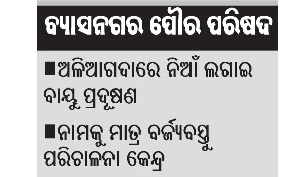 କଳିଙ୍ଗନଗର ଶିଳ୍ପାଞ୍ଚଳ ୮୮୧.୧୬ ବର୍ଗ କିଲୋମିଟରକୁ ନେଇ ଗଢି ଉଠିଛି। ସେଥିମଧ୍ୟରୁ ୨୨.୩୬ ବର୍ଗ କିଲୋମିଟର ଅଞ୍ଚଳକୁ ନେଇ ବ୍ୟାସନଗର ମ୍ୟୁନିସିପାଲିଟିର ପରିସୀମା। ୨୬ଟି ୱାର୍ଡକୁ ନେଇ ଗଠିତ ଏହି ପୌରାଞ୍ଚଳରେ ବେସରକାରୀ ଭାବେ ଲୋକସଂଖ୍ୟା ଦେଢଲକ୍ଷ ଛୁଇଁଲାଣି। ପ୍ରତ୍ୟହ ସହରରୁ ଅତି କମ୍‌ରେ ୫୦ ଟନ ଆବର୍ଜନା ବାହାରୁଛି। ପ୍ରଦୂଷଣ ନିୟନ୍ତ୍ରଣ ଆଇନ ଅନୁସାରେ ଏହି ଆବର୍ଜନାର ପରିଚାଳନା ପାଇଁ ରାଜ୍ୟ ସରକାର ଏକ ସମ୍ପଦ କେନ୍ଦ୍ର ୨୦୧୯ରୁ ପ୍ରତିଷ୍ଠା କରିଛନ୍ତି। ମ୍ୟୁନିସିପାଲିଟି ସହରର ୨୬ଟି ଯାକ ୱାର୍ଡର ଆବର୍ଜନା ଉଠାଇବା ଦାୟିତ୍ୱ ସବ୍ୟସାଚୀ ମହାକୁଡ ନାମକ ଏକ ବେସରକାରୀ ସଂସ୍ଥାକୁ ଠିକା ଦେଇଛି। ସମ୍ପୃକ୍ତ ଠିକା ସଂସ୍ଥା ସହରର ଆବର୍ଜନା ଏଣେତେଣେ ଗଦା କରିବା ସହ ବଡ଼ ଅଂଶ ବ୍ୟାସ ସରୋବର ଲେପ୍ରୋସି କଲୋନି ନିକଟରେ ଜମା କରୁଛି। କିନ୍ତୁ ସମ୍ପଦ କେନ୍ଦ୍ରଠାରେ ବର୍ଜ୍ୟବସ୍ତୁର ଉପଯୁକ୍ତ ପରିଚାଳନା ନ କରି ସେଠାରେ ନିଆଁ ଲଗାଇ ଦେଉଛି। କାନ୍ଥବାଡରେ ସ୍ବଚ୍ଛ ପରିମଳ ପାଇଁ ବିଭିନ୍ନ ନିୟମ ପାଳନ କରିବାକୁ ଅର୍ଥ ଖର୍ଚ୍ଚ କରି ବହୁ ସଚେତନତାର ବାର୍ତ୍ତା ଲେଖାଯାଉଛି। ଉଲ୍ଲଂଘନକାରୀଙ୍କୁ ଜାତୀୟ ସବୁଜ ପ୍ରାଧିକରଣଙ୍କ ଦ୍ୱାରା ୫ରୁ ୨୫ ହଜାର ଟଙ୍କା ପର୍ଯ୍ୟନ୍ତ ଜରିମାନା ଦେବାକୁ ପଡ଼ିବ ବୋଲି ଦର୍ଶାଯାଇଛି। ହେଲେ ଖୋଦ୍‌ ଉକ୍ତ ନିୟମକୁ ପାଳନ ନ କରି ପୌର ପରିଷଦ ଆଇନର ଉଲ୍ଲଂଘନ କରିଥିବା ଅଭିଯୋଗ ହୋଇଛି। ପରିମଳ ବ୍ୟବସ୍ଥା ପାଇଁ ନିୟୋଜିତ ଠିକାସଂସ୍ଥାକୁ ସରକାରୀ ଭାବେ ମାସକୁ ପ୍ରାୟ ୨୫ ଲକ୍ଷ ଟଙ୍କା ଦିଆଯାଉଛି। ଏହାବାଦ ରାସ୍ତାକଡ଼ରୁ ମଇଳା ନ ଉଠିବା, ଡ୍ରେନ୍‌ ସଫା ନ ହେବା ଯୋଗୁ ମଶାଙ୍କ ପ୍ରାଦୁର୍ଭାବ ଚରମସୀମାରେ ପହଞ୍ଚିଛି। ପୌର ପରିଷଦ ତରଫରୁ ନିୟୋଜିତ ସଂସ୍ଥା ଦ୍ୱାରା କୌଣସି ମଶାମରା ଔଷଧ ବ୍ୟବହାର ହେଉନାହିଁ। ପ୍ରାୟ ୬ ମାସ ହେବ ସହରର ଅଧିକାଂଶ ଡ୍ରେନ ସଫା ହୋଇନାହିଁ। ଡ୍ରେନରେ ଆବଶ୍ୟକ ମଶାତେଲ ସିଞ୍ଚନ କରାଯାଉନାହିଁ। ଏଥିପାଇଁ ଆସୁଥିବା ଅନୁଦାନକୁ ଠିକାସଂସ୍ଥା ଓ ପୌର କର୍ତ୍ତୃପକ୍ଷ ମିଳିମିଶି ଚଳୁ କରୁଥିବାରୁ ଏଭଳି ପରିସ୍ଥିତି ସୃଷ୍ଟି ହେଉଥିବା ଅଭିଯୋଗ ହୋଇଛି। ଏଥିପାଇଁ ଗତ ଅକ୍ଟୋବର ୧୫ରେ ନିର୍ବାହୀ ଅଧିକାରୀଙ୍କ ଉପରକୁ ପୌରାଧ୍ୟକ୍ଷା ଫାଇଲ ଫୋପାଡିବା ଭଳି ନିନ୍ଦନୀୟ ଭିଡିଓ ଭାଇରାଲ ହୋଇଛି। ଏହି ଘଟଣାକୁ ନେଇ ବିଭିନ୍ନ ମହଲରେ ନିନ୍ଦା କରିବା ସହ ପୌରାଧ୍ୟକ୍ଷାଙ୍କ ଗିରଫ ଦାବି କରାଯାଇଛି। ଏ ସଂକ୍ରାନ୍ତରେ ପୌର ନିର୍ବାହୀ ଅଧିକାରୀ ବିକ୍ରମ ମଲ୍ଲିକଙ୍କୁ ପଚାରିବାରେ ସେ କହିଛନ୍ତି, ଅଳିଆ ଗଦାରେ ନିଆଁ ଲଗାଇବା ଘଟଣା ଉପରେ ତଦନ୍ତ କରି ଆବଶ୍ୟକ ପଦକ୍ଷେପ ଗ୍ରହଣ କରାଯିବ।