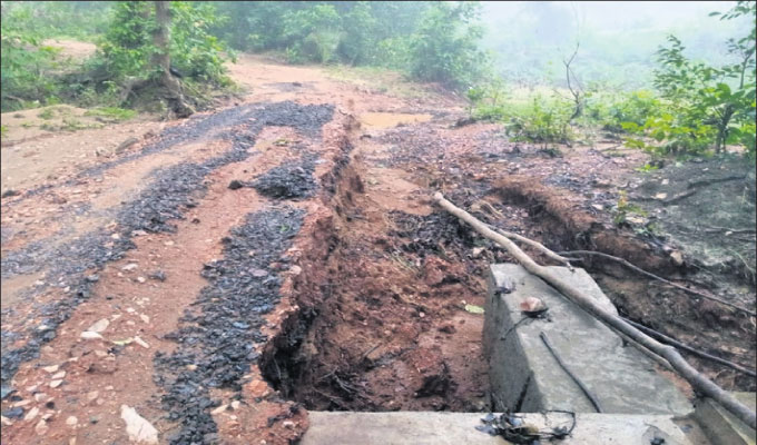 ନାକଟିଦେଉଳ,୨୪୮(ଡ଼ି.ଏନ.ଏ.): ଲଗାଣ ବର୍ଷାରେ ନାକଟିଦେଉଳ ବ୍ଲକ ଘୋଷରାମାଳ ପଞ୍ଚାୟତର ଧାତୁକିମାଳ କମଳାନାଳୀ ରାସ୍ତା ନାଳ ଉପରେ ନବନିର୍ମିତ କଲଭର୍ଟ ପୁଣି ଥରେ ଧୋଇ ହୋଇଯାଇଛି। ଧାତୁକିମାଳ ଗ୍ରାମ ପର୍ଯ୍ୟନ୍ତ ପକ୍କା ରାସ୍ତା ହୋଇଥିବା ବେଳେ ଅପହଞ୍ଚ କମଳାନାଳୀ ଓ ବଡ଼ବିଲ ଗ୍ରାମକୁ ଭଲ ରାସ୍ତା ଖଣ୍ଡିଏ ନାହଁି। ଧାତୁକିମାଳ ଗ୍ରାମରୁ ବଡ଼ବିଲ ପର୍ଯ୍ୟନ୍ତ ୫କି.ମି. ରାସ୍ତା ଶୋଚନୀୟ ହୋଇଥିବାବେଳେ ରାସ୍ତାରେ ଛୋଟବଡ଼ ୫ଟି ନାଳ ରହିଛି। ଧାତୁକିମାଳ ଗ୍ରାମଠାରୁ ବଡ଼ ନାଳଟି ପାରି ହେବା ପରେ ଏକ ଛୋଟ ନାଳ ଉପରେ ବ୍ଲକ ପ୍ରଶାସନ ପକ୍ଷରୁ କିଛି ମାସ ଆଗରୁ ଏକ କଲଭର୍ଟ ନିର୍ମିତ ହୋଇଥିଲା । ତେବେ ଲଗାଣ ବର୍ଷା ଫଳରେ ନାଳରେ ବଢି ପାଣି ଆସି କଲଭର୍ଟରୁ ମାଟି ଧସି ବିପଜ୍ଜନକ ଭାବେ ରହିଛି। ଗତ ମାସରେ ହୋଇଥିବା ଲଗାଣ ବର୍ଷାରେ ଏହି କଲଭର୍ଟ ଧୋଇ ଯାଇ ଯାତାୟାତରେ ବାଧା ସୃଷ୍ଟି କରିଥିଲା। ପ୍ରଶାସନ ପକ୍ଷରୁ ମରାମତି କରାଯାଇଥିଲେ ମଧ୍ୟ ତିନିଦିନ ପୂର୍ବରୁ ହୋଇଥିବା ଲଗାଣ ବର୍ଷାରେ ପୁଣିଥରେ ଧୋଇ ହୋଇଯାଇଛି।