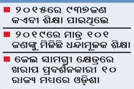 ଆଦର୍ଶ ଜେଲ ମାନୁଆଲ ନିୟମ ଅନୁସାରେ, ସବୁ ରାଜ୍ୟ ସରକାର ଜେଲରେ କଏଦୀଙ୍କୁ ବୃତ୍ତିଗତ ତଥା ଧନ୍ଦାମୂଳକ ତାଲିମ୍ ଦେବା ବାଧ୍ୟତାମୂଳକ। କିନ୍ତୁ ବିଗତ ୧୦ବର୍ଷର ଏନ୍ସିଆରବି ରିପୋର୍ଟରୁ ଜଣାପଡିଛି ଯେ, ଟେଲରିଂ, ହସ୍ତଶିଳ୍ପ, ରାଜମିସ୍ତ୍ରି, ପାଇପ୍ କାମ, କୃଷି ଉତ୍ପାଦନ, ସାବୁନ ଓ ଫିନାଇଲ ତିଆରି ଆଦି କ୍ଷେତ୍ରରେ କଏଦୀଙ୍କୁ ତାଲିମ୍ ଦିଆଯାଉଛି। କିନ୍ତୁ ଧୀରେ ଧୀରେ ଜେଲ୍ ବିଭାଗ ଏସବୁ ତାଲିମ୍ ଉପରେ ସେତେଟା ଗୁରୁତ୍ୱ ଦେଉନାହିଁ। ୨୦୧୦ରେ ମୋଟ ୧୨୪୨୯ ଜଣ କଏଦୀଙ୍କ ମଧ୍ୟରୁ ୪୮୧ ଜଣ କଏଦୀ ବିଭିନ୍ନ ଧନ୍ଦାମୂଳକ ତାଲିମ ଗ୍ରହଣ କରିଥିଲେ। ଏହ ହାର ୨୦୧୫ ପର୍ଯ୍ୟନ୍ତ କ୍ରମାଗତ ବୃଦ୍ଧି ଘଟିଥିଲା। ୨୦୧୫ରେ ରାଜ୍ୟର ୯୦ ଜେଲରେ ମୋଟ ୧୫,୯୬୫ଜଣ କଏଦୀ ରହିଥିବାବେଳେ ୯୩୭ଜଣ ବିଭିନ୍ନ ବୃତ୍ତିଗତ ଶିକ୍ଷା ଅଧୀନରେ ତାଲିମ ନେଇଥିଲେ। କିନ୍ତୁ ୨୦୧୬ରେ କେବଳ ୯୨ଜଣ କଏଦୀଙ୍କୁ ରାଜ୍ୟର ବିଭିନ୍ନ ଜେଲରେ ଧନ୍ଦାମୂଳକ ତାଲିମ ଦିଆଯାଇଥିଲା। ହେଲେ ୨୦୧୭ରେ ରାଜ୍ୟର କୌଣସି ଜଣେ ହେଲେ ବି କଏଦୀଙ୍କୁ ଏହି ତାଲିମ ଦେବାରେ ଜେଲ କର୍ତ୍ତୃପକ୍ଷ ବିଫଳ ହୋଇଥିଲେ। ସେହିପରି ୨୦୧୮ ମାତ୍ର ୯୪ ଓ ୨୦୧୯ରେ ୧୦୧ କଏଦୀ ପ୍ରଶିକ୍ଷଣ ନେଇଛନ୍ତି। ୨୦୧୫ରୁ ୨୦୧୭, ଏହି ୩ବର୍ଷ ମଧ୍ୟରେ ୧୬୨ ଜଣଙ୍କ ମଧ୍ୟରୁ କେବଳ ୩୨ଜଣଙ୍କୁ ରାଜମିସ୍ତ୍ର ଓ ପାଇପ୍ କାମ ପାଇଁ ତାଲିମ ଦିଆଯାଇଥିଲା। ଫଳରେ କଏଦୀଙ୍କ ଦ୍ୱାରା ଜେଲରୁ ଉପତ୍ାଦିତ ସାମଗ୍ରୀ ପରିମାଣ ଓ ମୂଲ୍ୟରେ ମଧ୍ୟ ହ୍ରାସ ଘଟୁଥିବା ଉକ୍ତ ରିପୋର୍ଟରୁ ଜଣାପଡିଛି।