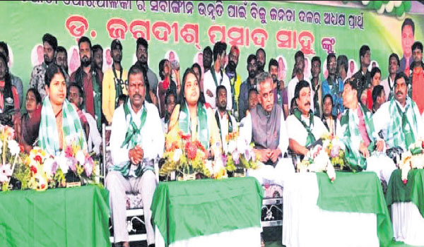 କେନ୍ଦୁଝର ଜିଲା ଯୋଡ଼ା ନିର୍ବାଚନ ପରିପ୍ରେକ୍ଷୀରେ ସୋମବାର ଅପରାହ୍ନରେ ଯୋଡ଼ା କେନ୍ଦ୍ରୀୟ ଖେଳ ପଡିଆ ଠାରେ ଗୋଟିଏ ମଞ୍ଚରେ ହେଭିଓ୍ବେଟ ନେତାଙ୍କ ସମାଗମ ହୋଇଥିଲା। ପୂର୍ବତନ ଚମ୍ପୁଆ ବିଧାୟକ ସନାତନ ମହାକୁଡ଼, ଜିତୁ ପଟ୍ଟନାୟକ, ଧନୁର୍ଜୟ ସିଦ୍ଧୁଙ୍କ ସମେତ ଚମ୍ପୁଆ ବିଧାୟିକା ମିନାକ୍ଷୀ ମହାନ୍ତ, କେନ୍ଦୁଝର ଏମ୍ପି ଚନ୍ଦ୍ରାଣି ମୁର୍ମୁ, ଜିଲା ବିଜେଡି ସଭାପତି ମାଧବ ସର୍ଦ୍ଦାର, ବରିଷ୍ଠ ଉପସଭାପତି କୁଶ ଆପଟ୍ଟ, ଜିଲା ବିଜେଡି ମହିଳା ସଭାପତି ରମଣୀ ନାଏକ ପ୍ରମୁଖଙ୍କ ଉପସ୍ଥିତିରେ ଯୋଡ଼ାର ୧୪ଟି ୱାର୍ଡର କାଉନସିଲର ପ୍ରାର୍ଥୀ ଓ ଅଧ୍ୟକ୍ଷ ପ୍ରାର୍ଥୀ ଡ଼ା ଜଗଦୀଶ ପ୍ରସାଦ ସାହୁଙ୍କୁ ଭୋଟ ଦେବା ପାଇଁ ଏକ ନିର୍ବାଚନୀ ସଭା କରାଯାଇଥିଲା। ଦଳରେ କନ୍ଦଳ ନୁହେଁ, ଯୋଡ଼ାର ବିକାଶ ପାଇଁ ସମସ୍ତେ ଏକାଠି ବୋଲି ସବୁ ନେତାମାନେ ନିଜର ମତ ବ୍ୟକ୍ତ କରିଥିଲେ। ପୂର୍ବତନ ବିଧାୟକ ଜିତୁ ପଟ୍ଟନାୟକ କହିଥିଲେ ଯେ, ସେ ପୌରାଧ୍ୟକ୍ଷ ଥିଲାବେଳେ ଅନେକ ଜନ କଲ୍ୟାଣ କାର୍ଯ୍ୟକୁ ପରବର୍ତ୍ତୀ ସମୟରେ ପୌରଧ୍ୟକ୍ଷ ଥିବା ନେତା ମାନେ ବନ୍ଦ କରି ଦେଇଥଲେ। ଜଗଦୀଶ ସାହୁ ନିର୍ବାଚିତ ହେଲେ ବକେୟା ବିକାଶ କାର୍ଯ୍ୟକୁ ପୁରା କରାଯିବ। ସନାତନ ମହାକୁଡ଼ କହିଥିଲେ ଯେ, ଅତୀତରେ ଯୋଡ଼ା ଅଞ୍ଚଳରେ ବିଭିନ୍ନ ଖଣିରେ ଜନଶୁଣାଣି ହେଉଥିବା ବେଳେ କେତେକ ତଥାକଥିତ ନେତା ଖଣି କମ୍ପାନୀ ସହିତ ସାଲିସ କରି ନିଜର ଫାଇଦା ହାସଲ କରୁଥିଲେ। ଫଳରେ ନିଯୁକ୍ତିରୁ ୧୪ଟି ୱାର୍ଡରେ ଥିବା ଶିକ୍ଷିତ ଯୁବତୀଯୁବକ ବଞ୍ଚିତ ହେଉଛନ୍ତି। ସହରର ଜୀବନ ଜୀବିକା ବିପର୍ଯ୍ୟସ୍ତ ହୋଇପଡିଛି। ଏଥିରେ ନିଶ୍ଚୟ ସୁଧାର ଅଣାଯିବ ବୋଲି ସେ ପ୍ରତିଶ୍ରୁତି ଦେଇଥିଲେ। ବିଜେଡି ଦାରା ହିଁ ବିକାଶ ସମ୍ଭବ ବୋଲି କୁଶ ଆପଟ୍ଟ କହିଛନ୍ତି। ଏମ୍ପି ମୁର୍ମୁ କହିଥିଲେ ଯେ, ସାରା ଭାରତ ବର୍ଷରେ ବିଜେଡି ଶାସନକୁ ଅନ୍ୟ ରାଜ୍ୟ ମାନେ ଏକ ଆଦର୍ଶ ଭାବେ ଗ୍ରହଣ କରୁଛନ୍ତି। ଏଣୁ ଯୋଡ଼ାର ସାମୁହିକ ବିକାଶ ପାଇଁ ବିଜେଡି ଦଳକୁ ସମସ୍ତ ନେତା ଭୋଟ ଦେବା ପାଇଁ ଆହ୍ବାନ କରିଥିଲେ। ଅଧ୍ୟକ୍ଷ ପ୍ରାର୍ଥୀ ଡ଼ା ସାହୁ କହିଥିଲେ ଯେ, ସରକାରୀ ଡାକ୍ତର ଭାବେ ଦରମା ପାଇଁ ରୋଗୀ ସେବା କରୁଥିଲି। ସେବା ନିବୃତ୍ତ ହେବା ପରେ ନିଃସ୍ବାର୍ଥ ହୋଇ ଜନ ସେବା କରିବି। ଉକ୍ତ ସଭାରେ ପ୍ରାୟ ୧୦ହଜାରରୁ ଉଦ୍ଧର୍ବ ଲୋକଙ୍କର ସମାଗମ ହୋଇଥିଲା।