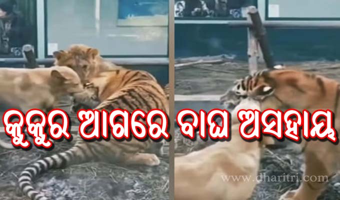 ଓ୍ବାଇଲ୍ଡ ଲାଇଫ୍‌ ଭାଇରାଲ ସିରିଜ୍‌ ନାମକ ଇନ୍‌ଷ୍ଟାଗ୍ରାମରେ ଶେୟାର ହୋଇଥିବା ଭିଡିଓରେ ଏକ କୁକୁର ବାଘର କାନକୁ ଯେପରି ଭାବରେ କାମୁଡ଼ି ଧରିଛି ବାଘଟି ଯନ୍ତ୍ରଣାରେ ଯେତେ ଛଟପଟ ହେଲେ ମଧ୍ୟ କୁକୁର ଛାଡୁନାହିଁ। କୁକୁରକୁ ଠେଲି ଦେଇ ନିଜକୁ ବଞ୍ଚାଇବାକୁ ବାଘ ଚେଷ୍ଟା କରିଥିଲେ ମଧ୍ୟ କୁକୁରଟି ବିନା ଭୟରେ ଅଟଳ ରହିଥିଲା। ଆଶ୍ଚର୍ଯ୍ୟର କଥା ଏଠି ଥିବା ସିଂହ ମଧ୍ୟ ବାଘକୁ ସାହାଯ୍ୟ କରି ନ ଥିଲା। ଏକ ଲୟରେ ସିଂହଟି କେବଳ ଏହି ଦୃଶ୍ୟକୁ ଉପଭୋଗ କରୁଥିଲା।