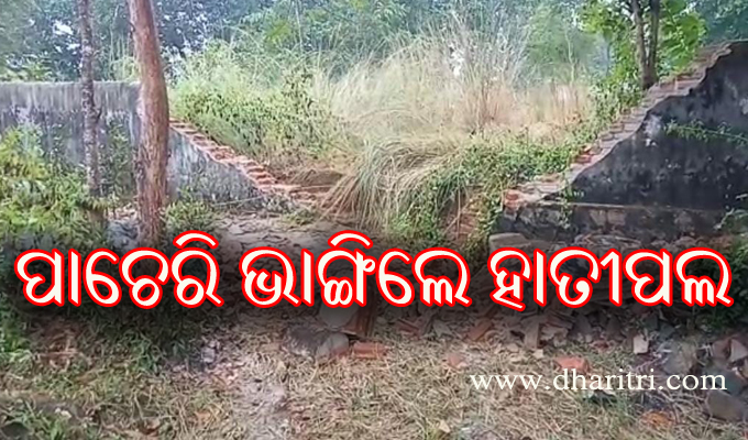 ଡାକବଙ୍ଗଳା ପାଚେରି ଭାଙ୍ଗିଲେ ହାତୀପଲ, ନଷ୍ଟ କଲେ ଧାନଫସଲ