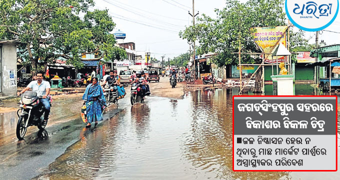 ଜଗତ୍ସିଂହପୁର, ୧୩ା୫(ପ୍ରମୋଦ କୁମାର ନାୟକ): ସ୍ବାଧୀନତାର ୭୭ ବର୍ଷ ପରେ ବି ଜଗତ୍ସିଂହପୁର ଜିଲା ମୁଖ୍ୟାଳୟରେ ଡ୍ରେନେଜ୍ ସମସ୍ୟାର ସ୍ଥାୟୀ ସମାଧାନ ହୋଇପାରିଲା ନାହିଁ। ଯେଉଁ ସମସ୍ୟା ଥିଲା ତାହା ଦୂରହେବା ତ ଦୂରର କଥା ବରଂ ଦିନକୁ ଦିନ ନୂଆ ନୂଆ ସମସ୍ୟା ସୃଷ୍ଟିକରୁଛି। ବିଭାଗୀୟ ଅପାରଗତା, ଦୂରଦୃଷ୍ଟି ତଥା ଆନ୍ତରିକତାର ଅଭାବ ଯୋଗୁ ଏଭଳି ହେଉଥିବା ଆଲୋଚନା ହେଉଛି। ସ୍ଥାନୀୟ ହାଟବଜାରସ୍ଥିତ ଜଗତ୍ସିଂହପୁର-ଆଳିପିଙ୍ଗଳ ମୁଖ୍ୟରାସ୍ତା ପାର୍ଶ୍ୱ କୃଷକ ବଜାରରେ ଏହାର ଉଦାହରଣ ଦେଖିବାକୁ ମିଳିଛି।
