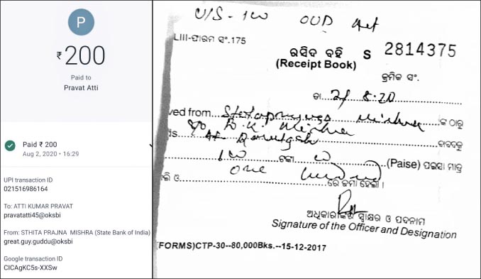 ମିଳିଥିବା ସୂଚନାନୁସାରେ, ଦିନ ପ୍ରାୟ ୧ଟାରୁ ଝାରପଡ଼ା ଓଭରବ୍ରିଜ୍ ନିକଟରେ ଯାଞ୍ଚ ଆରମ୍ଭ ହୋଇଥିଲା। ଅପରାହ୍ନ ସାଢ଼େ ୪ଟାରେ ଦୁଇଟି ବାଇକ୍ରେ ବାଣୀବିହାରରେ ରହୁଥିବା ତାରସେନ୍ ଦାରୁଆ ଓ ସ୍ଥିତପ୍ରଜ୍ଞ ମିଶ୍ର ଲକ୍ଷ୍ମୀସାଗର ଅଭିମୁଖେ ଯାଉଥିଲେ। ଯାଞ୍ଚ କରୁଥିବା ପୋଲିସ ଉଭୟଙ୍କୁ ଅଟକାଇ ଜରିମାନା ଦେବାକୁ କହିଥିଲେ। ପାଖରେ ନଗଦ ଟଙ୍କା ନ ଥିବାରୁ ଏଟିଏମ୍ କାର୍ଡ ବାହାର କରିଥିଲେ। ହେଲେ ଜରିମାନା ରଖୁଥିବା ଜଣେ ପୋଲିସ ଏଏସ୍ଆଇ ହଠାତ୍ ଗାଳିଗୁଲଜ କରି ଟଙ୍କା ବାହାର କରିବାକୁ କହିଥିଲେ। ପିଓଏସ୍ ମେଶିନ ନାହିଁ, ମୋବାଇଲ୍ ଫୋନ୍ ମାଧ୍ୟମରେ ଅନ୍ଲାଇନ୍ରେ ଜରିମାନା ପୈଠ କରିବାକୁ କହି ଏକ ଗୁଗଲ୍ ପେ’ ଆକାଉଣ୍ଟ ନମ୍ବର ଦେଇଥିଲେ। ସ୍ଥିତପ୍ରଜ୍ଞ ଗୁଗ୍ଲ ପେ’ରେ ଦୁଇଜଣଙ୍କ ପାଇଁ ୨ଶହ ଟଙ୍କା ପଠାଇବା ପରେ ପୋଲିସ ଅଧିକାରୀ ଜଣକ ରସିଦ ଦେଇଥିଲେ। ତେବେ ଏହାପରେ ସେମାନେ ଉକ୍ତ ଆକାଉଣ୍ଟ ନମ୍ବର ଯାଞ୍ଚ କରିବାରୁ ତାହା ବ୍ୟକ୍ତିଗତ ଥିବା ଓ ପ୍ରଭାତ ଆଟ୍ଟିଙ୍କ ନାଁରେ ଥିବା ଜଣାପଡିଥିଲା। ସେମାନଙ୍କ ଆଗରେ ଅଧିକାଂଶ ଉଲ୍ଲଂଘନକାରୀଙ୍କଠାରୁ ସମ୍ପୃକ୍ତ ପୋଲିସ ଅଧିକାରୀ ଗୁଗଲ୍ ପେ’ ଓ ଅନ୍ଲାଇନ୍ରେ ଜରିମାନା ଟଙ୍କା ନେଇଥିବାରୁ ତାହା ବ୍ୟକ୍ତିଗତ ଆକାଉଣ୍ଟ୍କୁ ଯାଇଥିବା ସନ୍ଦେହ କରାଯାଉଛି।