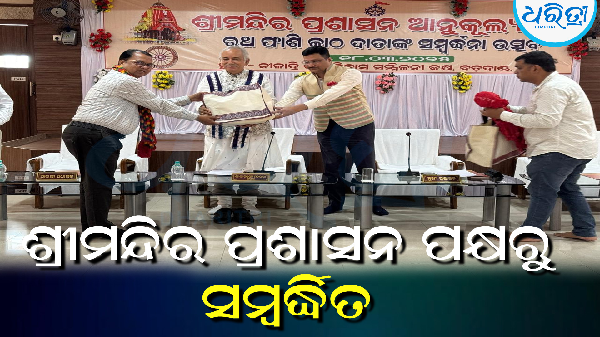ଭଞ୍ଜନଗର,୧୮।୩(ବାବୁଲା ପ୍ରଧାନ)- ପୁରୀ ଶ୍ରୀମନ୍ଦିର ପ୍ରଶାସନ ଦ୍ବାରା ଗଞ୍ଜାମ ଜିଲା ଭଞ୍ଜନଗର ଦକ୍ଷୀଣ ଘୁମୁସର ବନଖଣ୍ଡର ୧୬ ଜଣ ଏବଂ ଉତ୍ତର ଘୁମୁସର ବନଖଣ୍ଡର ୭ ଜଣ ସମ୍ବର୍ଦ୍ଧିତ ହୋଇଛନ୍ତି। ଉକ୍ତ ବ୍ୟକ୍ତିମାନେ ବିଗତ ଦୁଇବର୍ଷ ମଧ୍ୟରେ ପୁରୀ ଶ୍ରୀମନ୍ଦିର ରଥଯାତ୍ରା ପାଇଁ ଫାଶୀ କାଠ ଦାନ କରିଥିଲେ। ତେଣୁ ସେମାନଙ୍କୁ ଉତ୍ସାହିତ କରିବା ପାଇଁ ମଙ୍ଗଳବାର ଶ୍ରୀମନ୍ଦିର ପ୍ରଶାସନ ପକ୍ଷରୁ ସମ୍ବର୍ଦ୍ଧିତ କରାଯାଇଛି। ଏଥିସହ ଗତବର୍ଷ ଦକ୍ଷିଣ ଘୁମୁସର ବନଖଣ୍ଡ ପକ୍ଷରୁ ବହୁତ କାଠ ଶ୍ରୀମନ୍ଦିରକୁ ଦାନ କରାଯାଇଥିବା ଯୋଗୁ ରଥ ଚକ ଉପହାର ମିଳିଥିଲା। ତାହାକୁ ସ୍ଥାନୀୟ କାର୍ଯ୍ୟାଳୟରେ ପୂଜା କରାଯାଉଛି । ଚଳିତ ବର୍ଷ ଦକ୍ଷିଣ ଘୁମୁସର ବନଖଣ୍ଡର ୨୨ ଜଣ କାଠ ଦାନ କରିବା ପାଇଁ କାଠ ଚୟନ ହୋଇଛି। ଏଥିସହ ବିଭାଗ ପକ୍ଷରୁ ମଧ୍ୟ କାଠ ଦେବା ପାଇଁ ଚୟନ ହୋଇଛି ବୋଲି ଡିଏଫ୍ଓ ବିନୋଦ ଆଚାର୍ଯ୍ୟ ଏଠାରେ ପ୍ରକାଶ କରିଛନ୍ତି। ସେହିଭଳି ଗତବର୍ଷ ରଥଯାତ୍ରା ରେ ଉତ୍ତର ଘୁମୁସର ବନଖଣ୍ଡ ରୁ ମଧ୍ୟ କାଠ ଯାଇଥିଲା। ତେଣୁ ମଙ୍ଗଳବାର ପୁରୀ ଶ୍ରୀମନ୍ଦିର ପ୍ରଶାସନ ପକ୍ଷରୁ ଏହି ବନଖଣ୍ଡକୁ ସମ୍ବର୍ଦ୍ଧନା ଦିଆଯାଇଥିଲା। ଡିଏଫ୍ଓ ହିମାଂଶୁ ଶେଖର ମହାନ୍ତି ଯୋଗଦେଇ ଉକ୍ତ ପୁରସ୍କାର ପୁରୀ ଗଜପତି ମହାରାଜ ଦିବ୍ୟ ସିଂହ ଦେଉଙ୍କଠାରୁ ଗ୍ରହଣ କରିଥିଲେ। ଏହି ସମୟରେ ପୁରୀ ଶ୍ରୀମନ୍ଦିର ପ୍ରଶାସକ ଅରବିନ୍ଦ ପାଢ଼ୀ ପ୍ରମୁଖ ଉପସ୍ଥିତ ଥିଲେ। ଚଳିତ ବର୍ଷ ମଧ୍ୟ ଏହି ବନଖଣ୍ଡରୁ କାଠ ପୁରୀ ରଥଯାତ୍ରା ପାଇଁ ଯିବାର ଯୋଜନା ଅଛି। ଏଥିପାଇଁ କାଠ ଚୟନ ପ୍ରକ୍ରିୟା ସରିଛି।