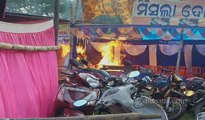 ସାକ୍ଷୀଗୋପାଳ,୨ା୧୧(ଡି.ଏନ୍.ଏ.): ପୁରୀ ଜିଲା ସାକ୍ଷୀଗୋପାଳରେ ଅଁଳାନବମୀ ଉପଲକ୍ଷେ ଆୟୋଜିତ ସାଂସ୍କୃତିକ ସମାରୋହ ଶ୍ରୀରାଧା ଉତ୍ସବ ପଡ଼ିଆରେ ଏକ ଜଳଖିଆ ଦୋକାନରେ ବୁଧବାର ଆକସ୍ମିକ ଅଗ୍ନିକାଣ୍ଡ ଘଟିଥିଲା। ମସଲାଦୋସା ପ୍ରସ୍ତୁତ କରୁଥିବା ଏହି ଦୋକାନରେ ଲାଗିଥିବା ରନ୍ଧନ ଗ୍ୟାସ ଟାଙ୍କିରେ ନିଆଁ ଲାଗିଯାଇ ଜଳିବାକୁ ଲାଗିଥିଲା। ଫଳରେ ଉକ୍ତ ଦୋକାନର ଟେଣ୍ଟ କପଡ଼ା ପୋଡ଼ିଯାଇଥଗଲା। ଉପସ୍ଥିତ ଲୋକେ ଓ ଅଗ୍ନିଶମ କର୍ମଚାରୀ ନିଆଁ ଲିଭାଇ ଦେଇଥିବାରୁ ଏକ ବଡ଼ ଧରଣର ଅଘଟଣ ଟଳିଯାଇଛି।