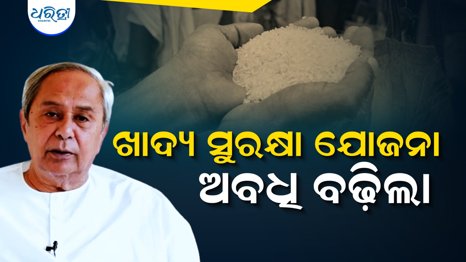 ଭୁବନେଶ୍ୱର,୧୫ା୧୨: ରାଜ୍ୟ ଖାଦ୍ୟସୁରକ୍ଷା ଯୋଜନାର ଅବଧିକୁ ମୁଖ୍ୟମନ୍ତ୍ରୀ ନବୀନ ପଟ୍ଟନାୟକ ଆଉ ୫ ବର୍ଷକୁ ବୃଦ୍ଧି କରିଛନ୍ତି।