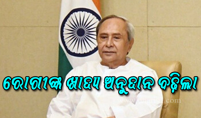 ରୋଗୀ ସେବା ପ୍ରଦାନ ବ୍ୟବସ୍ଥାକୁ ଅଧିକ ସୁଦୃଢ଼ କରିବା ଉଦ୍ଦେଶ୍ୟରେ ସରକାରୀ ଡାକ୍ତରଖାନାରେ ଚିକିତ୍ସା ନିମନ୍ତେ ଭର୍ତ୍ତି ହେଉଥିବା ଇନ୍ଡୋର ରୋଗୀଙ୍କ ପାଇଁ ଦିଆଯାଉଥିବା ଖାଦ୍ୟ ଅନୁଦାନରେ ୩୦ ପ୍ରତିଶତ ବୃଦ୍ଧିକୁ ମୁଖ୍ୟମନ୍ତ୍ରୀ ନବୀନ ପଟ୍ଟନାୟକ ଅନୁମୋଦନ କରିଛନ୍ତି। ଏହାଦ୍ୱାରା ବାର୍ଷିକ ୬୪ କୋଟି ଟଙ୍କା ଖର୍ଚ୍ଚ ହେବ ଏବଂ୪୨ ଲକ୍ଷରୁ ଅଧିକ ରୋଗୀ ଉପକୃତ ହେବେ। ନିଆଯାଇଥିବା ନୂଆ ନିଷ୍ପତ୍ତି ଅନୁଯାୟୀ, ଡାକ୍ତରଖାନାଗୁଡ଼ିକରେ ଶଯ୍ୟା ପିଛା ଦିଆଯାଉଥିବା ସାଧାରଣ ଦୈନିକ ଖାଦ୍ୟ ବାବଦକୁ ୮୫ ଟଙ୍କା ବଦଳରେ ୧୧୦ ଟଙ୍କା, ଶିଶୁମାନଙ୍କ ପାଇଁ ଦିଆଯାଉଥିବା ଦୈନିକ ୭୫ ଟଙ୍କାରୁ ୯୫ ଟଙ୍କା, ଉଚ୍ଚ ପୁଷ୍ଟିସାରଯୁକ୍ତ ଖାଦ୍ୟ ପାଇଁ ଦିଆଯାଉଥିବା ଦୈନିକ ୯୫ ଟଙ୍କାରୁ ୧୨୦ ଟଙ୍କା, ଶୁଖିଲା ଖାଦ୍ୟ ପାଇଁ ଦିଆଯାଉଥିବା ଦୈନିକ ୭୫ ଟଙ୍କାରୁ ୯୫ ଟଙ୍କା ଏବଂ ତରଳ ଖାଦ୍ୟ ବାବଦକୁ ଦିଆଯାଉଥିବା ଦୈନିକ ୮୫ ଟଙ୍କାରୁ ୧୧୦ ଟଙ୍କାକୁ ବୃଦ୍ଧି କରାଯାଇଛି।