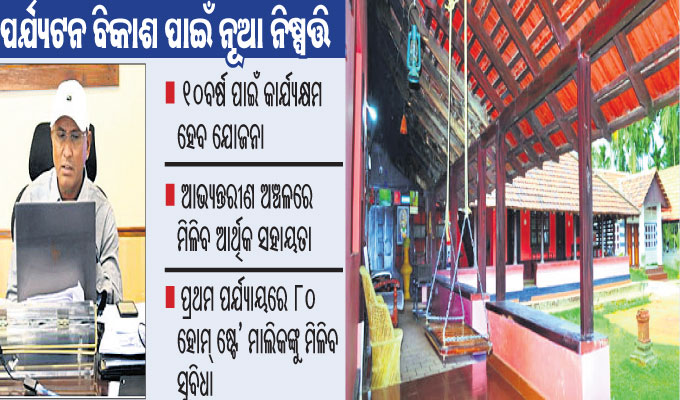 ୨୦୨୧-୨୨ ଆର୍ଥିକବର୍ଷରୁ ୧୦ବର୍ଷ ପାଇଁ ହୋମ୍ ଷ୍ଟେ’ ଯୋଜନାର ପ୍ରଚାର ପ୍ରସାର କରିବାକୁ ସରକାର ସମସ୍ତ ପ୍ରକାର ସହଯୋଗ ଯୋଗାଇଦେବେ ବୋଲି ବୈଠକରେ ନିଷ୍ପତ୍ତି ହୋଇଛି। ହୀରକ ତ୍ରିଭୁଜ ତଥା ବୁଦ୍ଧିଷ୍ଟ ସର୍କିଟ(ରତ୍ନଗିରି-ଉଦୟଗିରି-ଲଳିତଗିରି), କୋରାପୁଟ ଜିଲାର ଓଙ୍କାଡେଲି, କେନ୍ଦ୍ରାପଡ଼ା ଜିଲାର ଭିତରକନିକା ଜାତୀୟ ଉଦ୍ୟାନ, ଖୋଳା, ଗୁପ୍ତି, ଡାଙ୍ଗମାଳ, କନ୍ଧମାଳ ଜିଲାର ଦାରିଙ୍ଗବାଡ଼ି, ବେଲଘର, ମୟୂରଭଞ୍ଜର ଶିମିଳିପାଳ, ଯଶିପୁର, ପିଠାବାଟ, ଅନୁଗୋଳ ଜିଲାର ଟିକରପଡ଼ା, ସାତକୋଶିଆ, ଖୋର୍ଦ୍ଧାର ମଙ୍ଗଳାଯୋଡ଼ି ଓ ଚିଲିକା ଏବଂ ବରଗଡ଼ ଜିଲାର ଢୋଡ୍ରୋକୁସୁମ ଓ ଜିରୋ ପିଣ୍ଟରେ ପ୍ରଥମ ପର୍ଯ୍ୟାୟରେ ହୋମ୍ ଷ୍ଟେ’ ବ୍ୟବସ୍ଥାକୁ ଗୁରୁତ୍ୱ ଦିଆଯିବ। ଏହି ଅଞ୍ଚଳରେ ଯେଉଁ ବ୍ୟକ୍ତିବିଶେଷ ହୋମ୍ ଷ୍ଟେ’ ନିମନ୍ତେ ଆଗ୍ରହ ଦେଖାଇବେ ସେମାନଙ୍କୁ ରାଜ୍ୟ ସରକାର ପ୍ରତିବର୍ଷ ଆର୍ଥିକ ସହାୟତା ଯୋଗାଇଦେବେ। ପ୍ରଥମ ପର୍ଯ୍ୟାୟରେ ୮୦ଜଣ ହୋମ୍ ଷ୍ଟେ’ ମାଲିକଙ୍କୁ ଏହି ସୁବିଧା ମିଳିବ। ସେହିଭଳି ପ୍ରତି ହୋମ୍ ଷ୍ଟେ’ରେ ୧ରୁ ୬ଟି ରୁମ୍ ପର୍ଯ୍ୟଟକଙ୍କ ପାଇଁ ଉପଲବ୍ଧ ରହିବ। ମାଲିକ ଏବଂ ତାଙ୍କ ପରିବାର ରହୁଥିବା ଘର ପରିସରରେ ହିଁ ଏହି ରୁମ୍ଗୁଡ଼ିକ ରହିବା ସହ ପର୍ଯ୍ୟଟକଙ୍କ ଆତିଥ୍ୟ ଚର୍ଚ୍ଚାରେ ମଧ୍ୟ ସେମାନେ ନିଜେ ସହଯୋଗ କରିବେ। ରୁମ୍ଗୁଡ଼ିକ ଲାଗି ଆବଶ୍ୟକ ସମସ୍ତ ଆସବାବପତ୍ର ଏବଂ ଭିତ୍ତିଭୂମି ସଜାଡ଼ିବାରେ ସରକାରଙ୍କ ପକ୍ଷରୁ ସହଯୋଗ ଯୋଗାଇ ଦିଆଯିବ ବୋଲି ମୁଖ୍ୟ ଶାସନ ସଚିବ ତ୍ରିପାଠୀ କହିଥିଲେ।