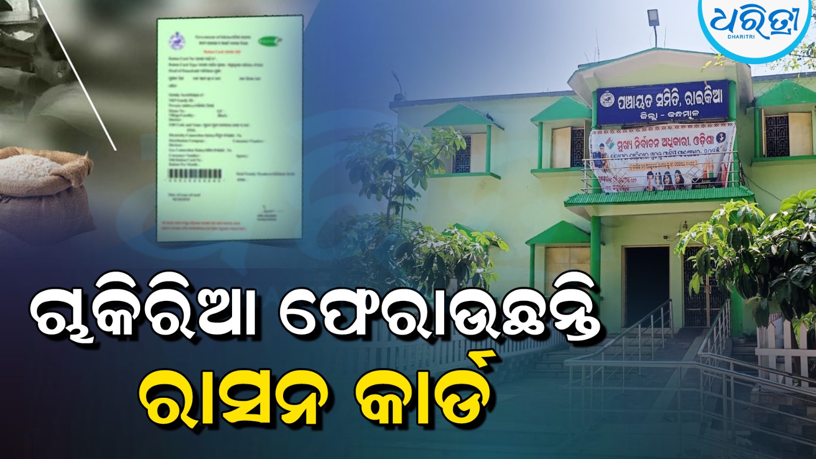 ରାଇକିଆ,୩।୨(ପ୍ରଦୀପ ବେହେରା):କ୍ଷୁଧା ଦୂର କରିବା ପାଇଁ କେନ୍ଦ୍ର ଓ ରାଜ୍ୟ ସରକାର ମାଗଣା ଚାଉଳ ଯୋଗାଇ ଦେଉଛନ୍ତି। ଏହି ଯୋଜନାରେ ରାଇକିଆ ବ୍ଲକରେ ଅନେକ ସରକାରୀ କର୍ମଚାରୀ ଖାଦ୍ୟ ସୁରକ୍ଷାରେ ସାମିଲ ହେବା ସହ ସରକାରଙ୍କ ବିଭିନ୍ନ ସୁବିଧା ନେଉଛନ୍ତି । ଏହି ବ୍ଲକରେ ଏବେ ମଧ୍ୟ ଅନେକ ଯୋଗ୍ୟ ହିତାଧୀକାରୀ ତାଲିକାରେ ସାମିଲ ହୋଇ ନ ପାରି ଏଥିରୁ ବଞ୍ଚିତ ହେଉଛନ୍ତି। ଅଯୋଗ୍ୟ ହିତାଧୀକାରୀଙ୍କ ସଂଖ୍ୟା ଜାଣିବା ଓ ଯୋଗ୍ୟ ହିତାଧୀକାରୀଙ୍କୁ ଏଥିରେ ସାମିଲ କରିବା ପାଇଁ ଜୁନ ମାସରୁ ରାସନ କାର୍ଡ ସହିତ ଇ-କେୱାଇସି ଅପଡେଟ କରାଯାଉଛି। ଇତି ମଧ୍ୟରେ କାର୍ଡ ହାତେଇଥିବା ସରକାରୀ କର୍ମଚାରୀମାନଙ୍କ ତାଲିକା ପ୍ରସ୍ତୁତ କରାଯାଇଛି।