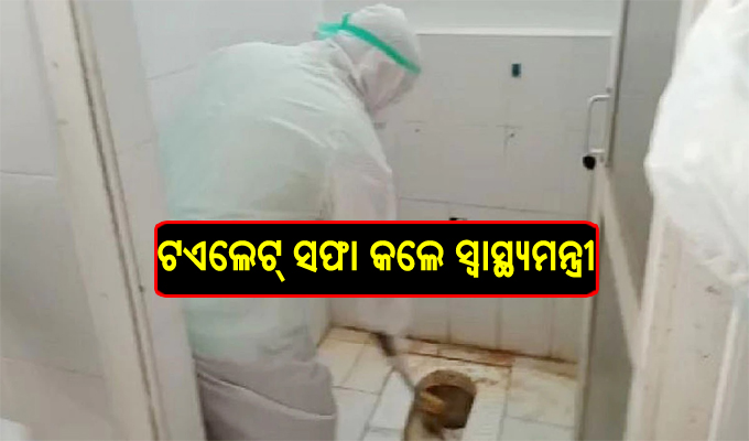 ପିପିଇ କିଟ୍‌ ପିନ୍ଧି ଡାକ୍ତରଖାନା ଟଏଲେଟ୍‌ ସଫା କଲେ ସ୍ବାସ୍ଥ୍ୟମନ୍ତ୍ରୀ, ଭିଡିଓ ଭାଇରାଲ