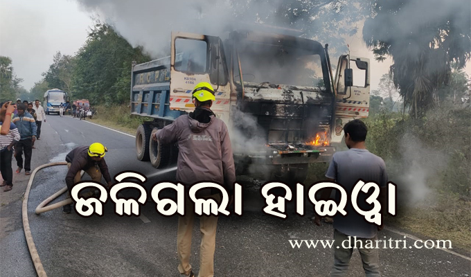 ଆନନ୍ଦପୁର,୨୯ା୧(ସ୍ବ.ପ୍ର.): ୫୩ ନଂ ଜାତୀୟ ରାଜପଥର ଘସିପୁରା ବ୍ଲକ ବୀରଗୋବିନ୍ଦପୁର ପଞ୍ଚାୟତ ଭଦ୍ରକ-କରଞ୍ଜିଆ ରାସ୍ତାର ଗୋହିରାବଣି ଛକ ନିକଟରେ ଏକ ଚିପ୍ସ ବୋଝେଇ ହାଇଓ୍ବାରେ ଶନିବାର ନିଆଁ ଲାଗି ସମ୍ପୂର୍ଣ୍ଣ ଜଳିଯାଇଛି। ହାଇଓ୍ବାରେ ଥିବା ଚାଳକ ଓ ହେଲ୍ପର ଅଳ୍ପକେ ବର୍ତ୍ତିଯାଇଛନ୍ତି। ଆନନ୍ଦପୁର ଅଗ୍ନିଶମ ବିଭାଗ ସୂଚନା ପାଇ ଘଟଣାସ୍ଥଳରେ ପହଞ୍ଚି ନିଆଁକୁ ଆୟତ୍ତ କରିଥିବା ସୂଚନା ମିଳିଛି। ତେବେ ଅଗ୍ନିକାଣ୍ଡର କାରଣ ସ୍ପଷ୍ଟ ହୋଇନାହିଁ।