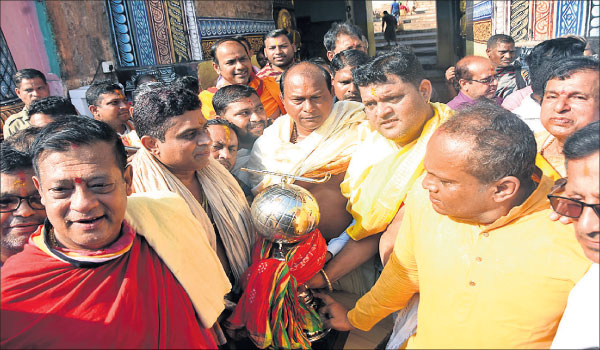 ପୁରୀ ଅଫିସ, ୨୮ା୧୨: ଶ୍ରୀକ୍ଷେତ୍ରରେ ମଙ୍ଗଳବାର ହକି ବିଶ୍ୱକପ୍ ଟ୍ରଫିକୁ ଜିଲା ପ୍ରଶାସନ ଓ ଶ୍ରୀମନ୍ଦିର ପ୍ରଶାସନ ସମେତ ଜିଲାବାସୀଙ୍କ ପକ୍ଷରୁ ଭବ୍ୟ ସ୍ବାଗତ କରାଯାଇଛି। ସକାଳ ୭ଟା ୩୦ରେ ଏକ ଶୋଭାଯାତ୍ରାରେ ସର୍କିଟ ହାଉସଠାରୁ ବେଳାଭୂମିକୁ ଟ୍ରଫି ଅଣାଯାଇଥିଲା। ସେଠାରେ ବିଭିନ୍ନ ସାସ୍କୃତିକ କାର୍ଯ୍ୟକ୍ରମ ଓ ମାଲଖମ୍ବ କ୍ରୀଡ଼ା ପ୍ରଦର୍ଶନ କରାଯାଇଥିଲା। କ୍ରୀଡ଼ା ମନ୍ତ୍ରୀ ତୁଷାରକାନ୍ତି ବେହେରା, ପ୍ରଶାସନିକ ଅଧିକାରୀ ଏବଂ ଅନ୍ୟମାନେ ଟ୍ରଫିକୁ ସ୍ବାଗତ କରିଥିଲେ। ପରେ ଟ୍ରଫିକୁ ଶ୍ରୀମନ୍ଦିର ସିଂହଦ୍ୱାର ସମ୍ମୁଖକୁ ନିଆଯାଇଥିଲା। ସେଠାରେ ଶ୍ରୀମନ୍ଦିର ପ୍ରଶାସନ ଓ ସେବାୟଙ୍କ ପକ୍ଷରୁ ଖଣ୍ଡୁଆ ପାଟ ଅର୍ପଣ ସହ ସ୍ବାଗତ କରାଯାଇଥିଲା।